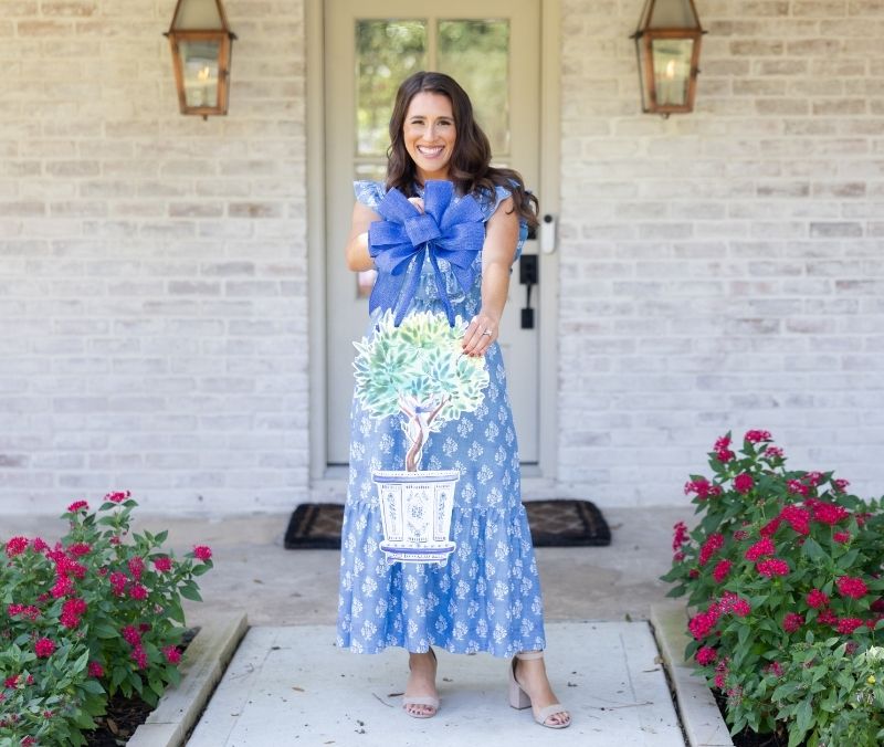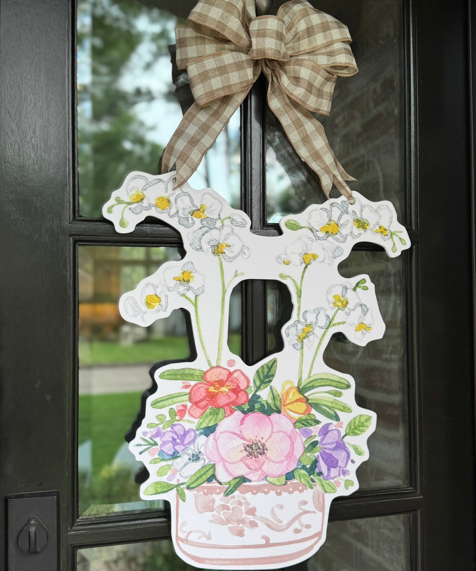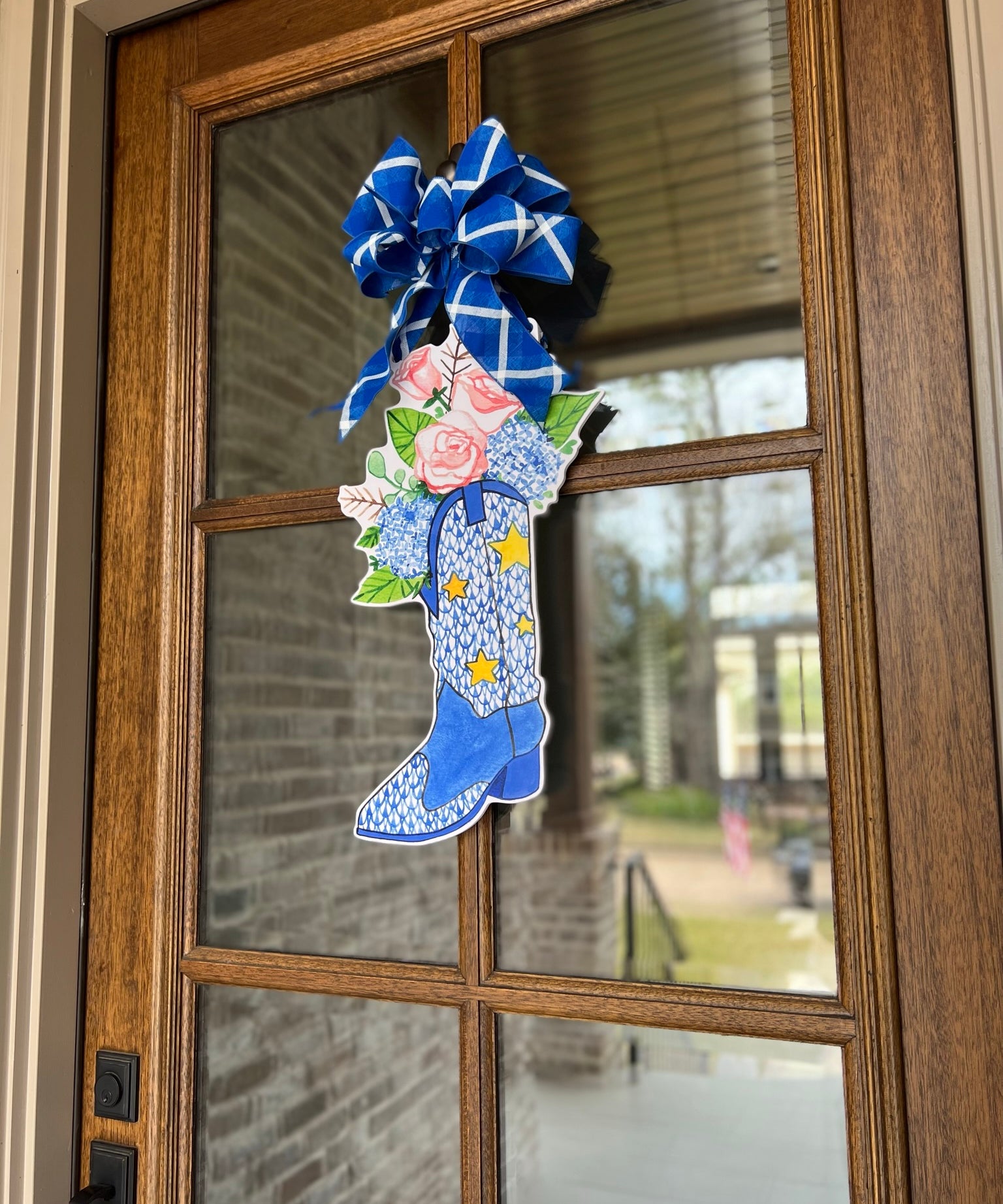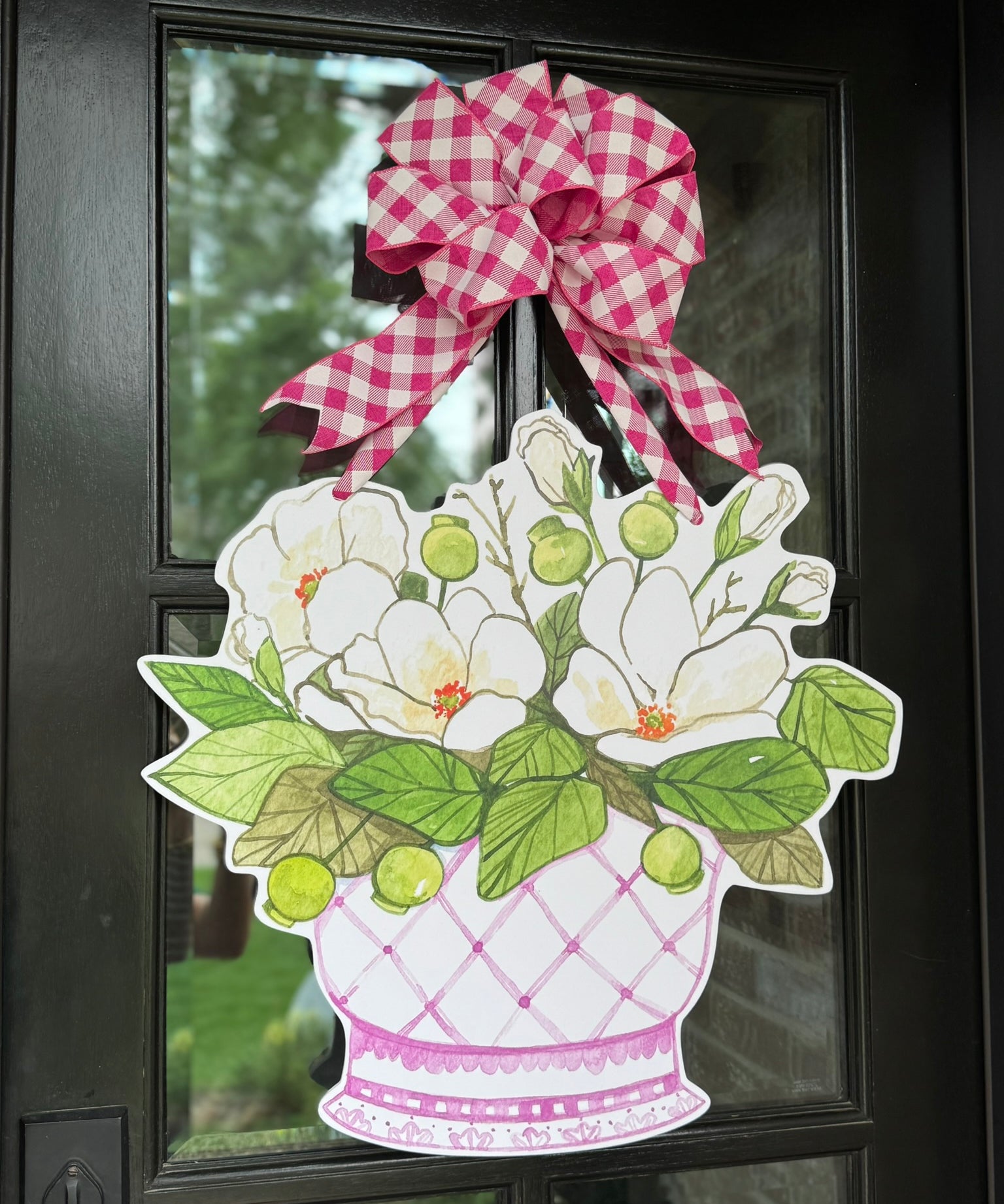 The Amy is the first ever Home Themed Home door hanger!! It pairs the love I have for boxwoods planters and chinoiserie.
