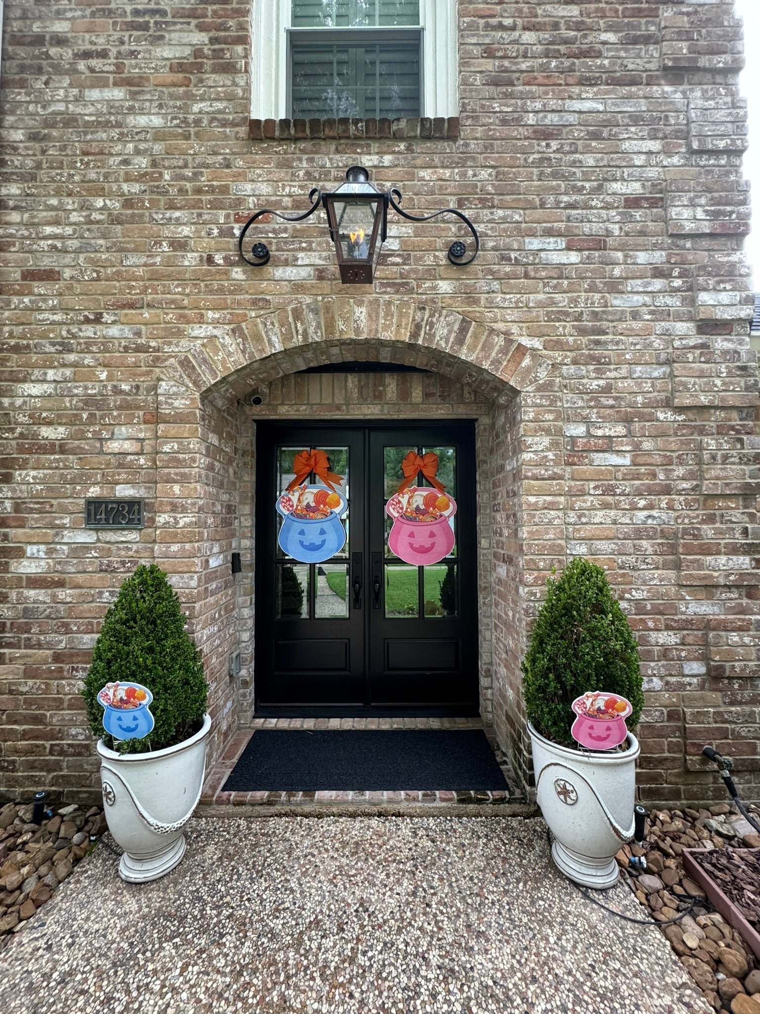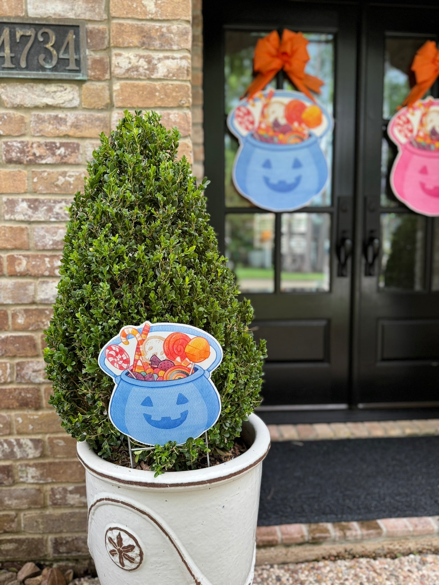 The perfect grandmillenial Fall front door décor. This pot stake measures approximately 9" x 10".