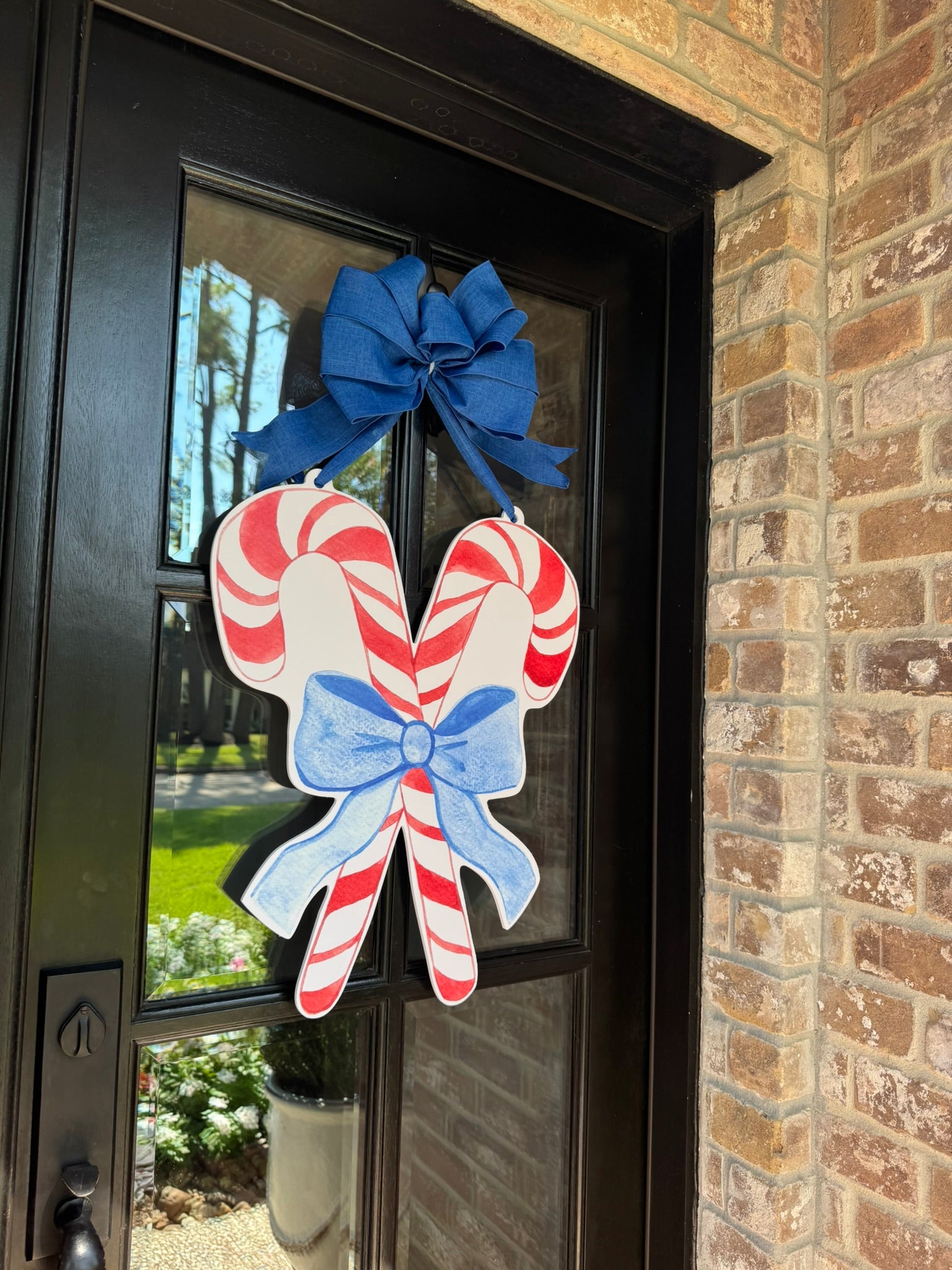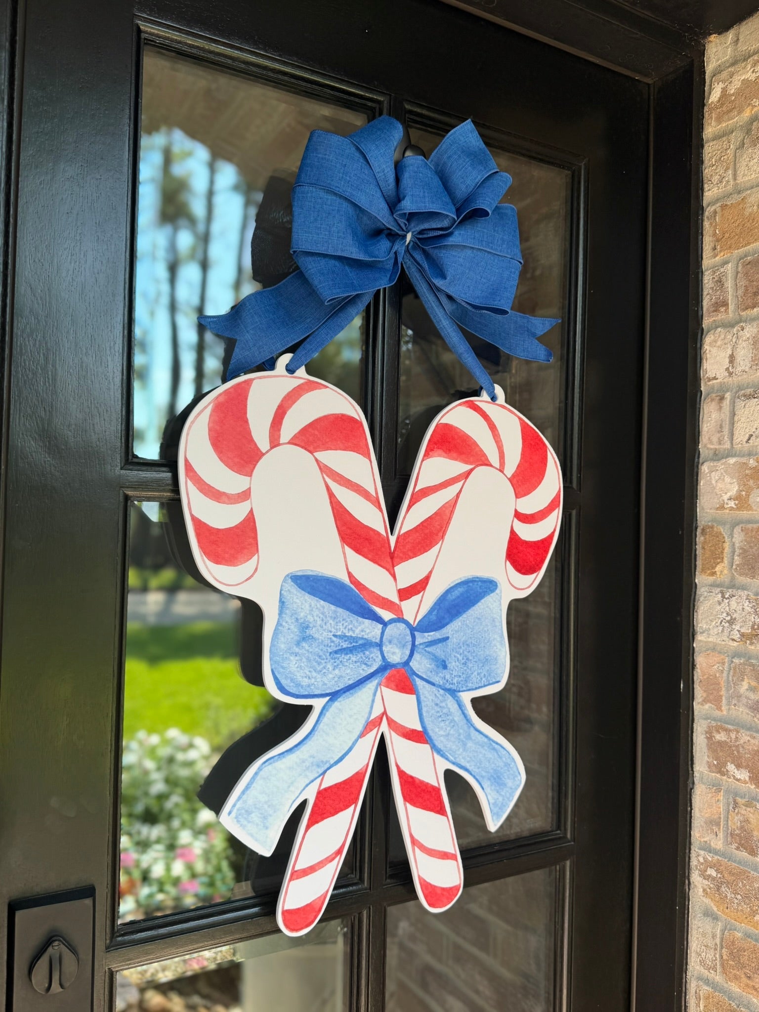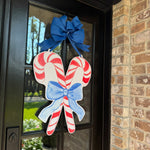 Candy Canes with Blue Bow Door Hanger