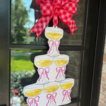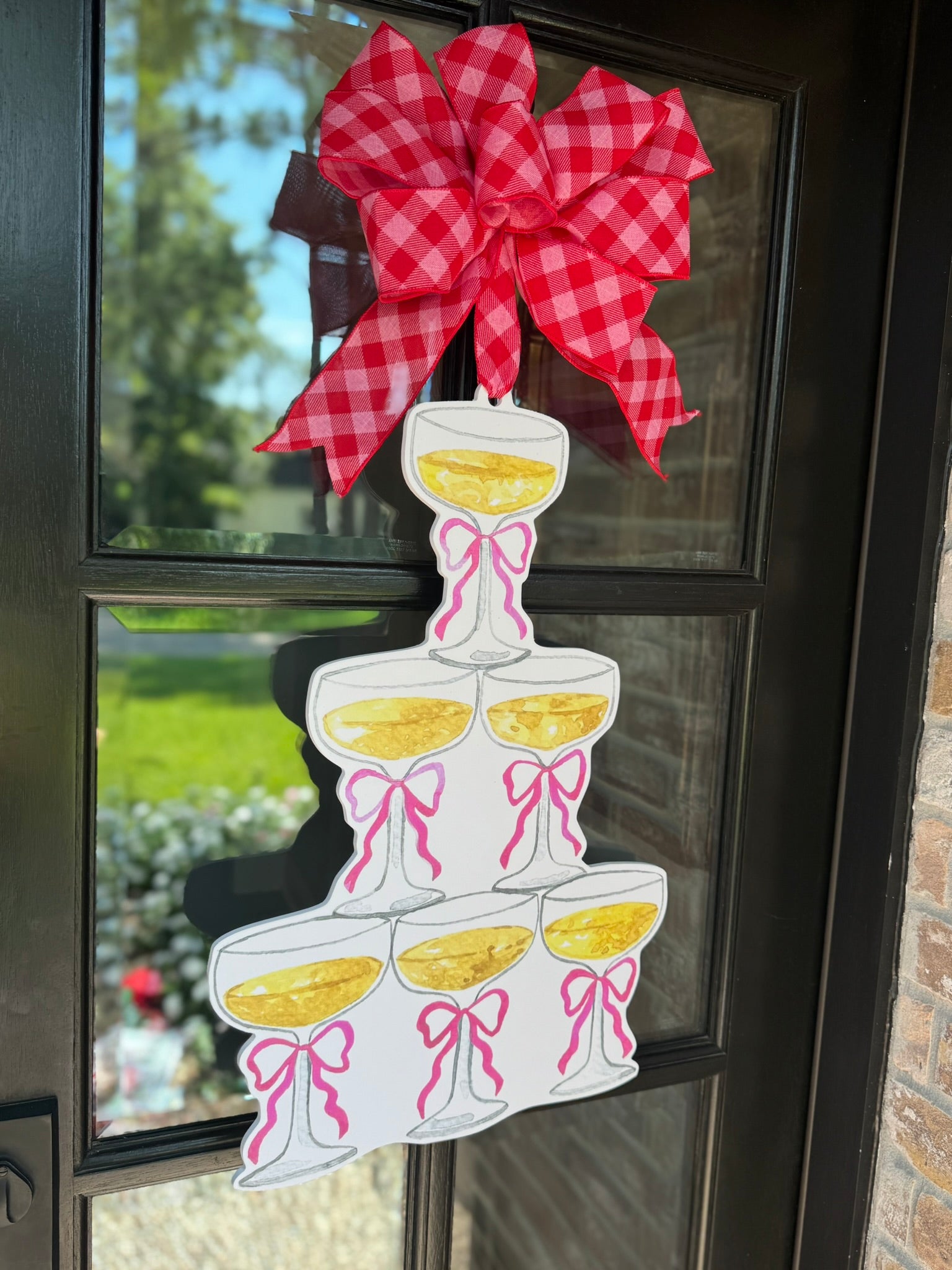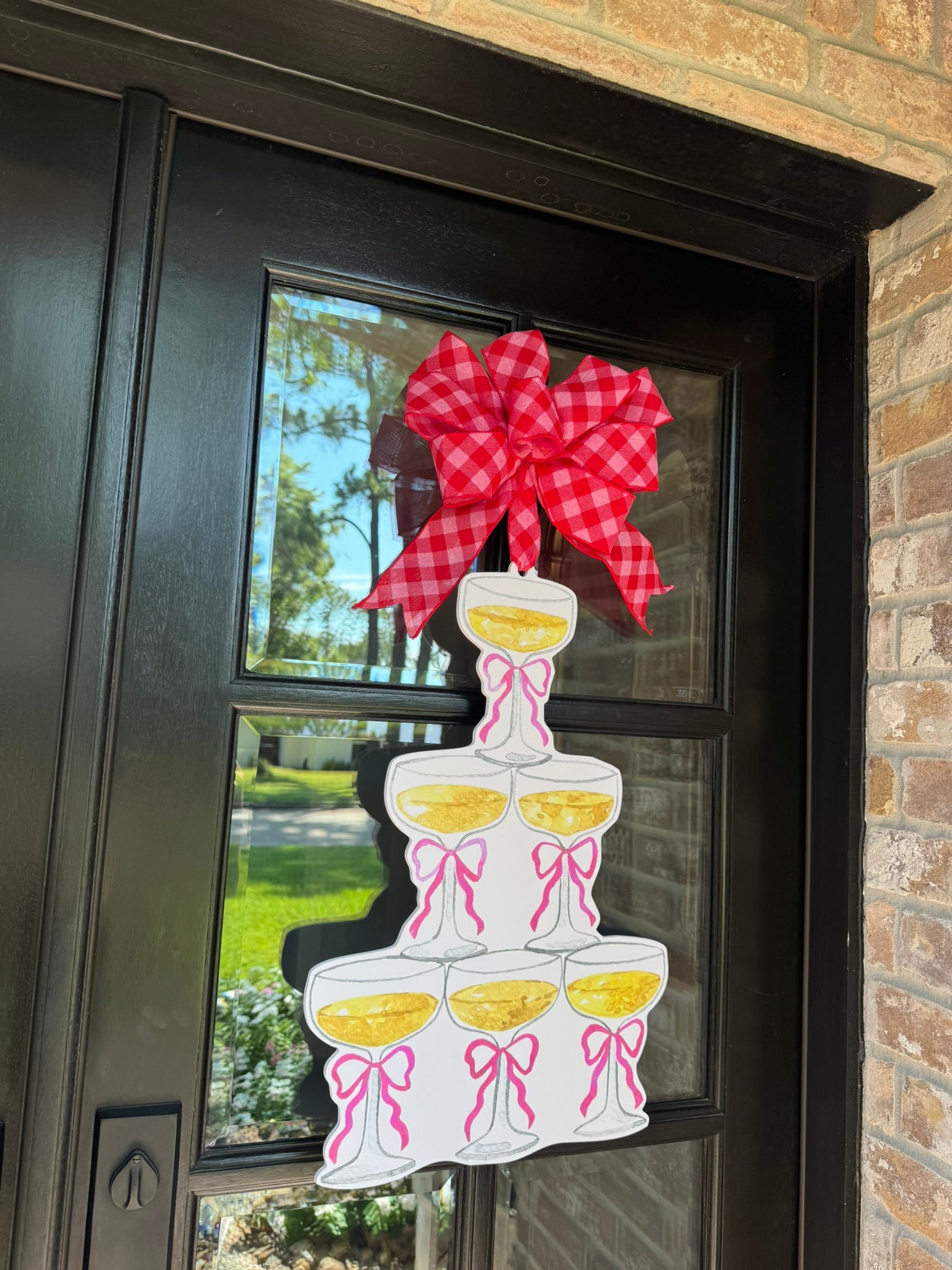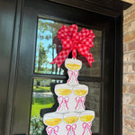 Cheers Champagne Tower with Pink Bows Door Hanger