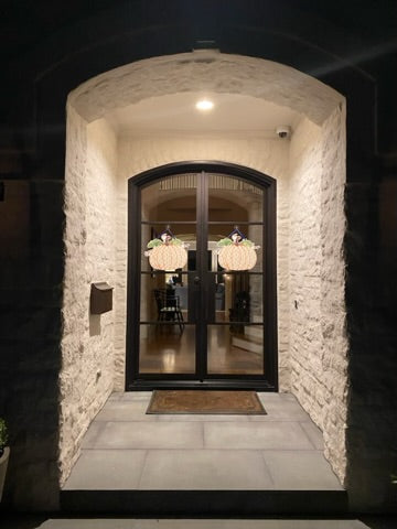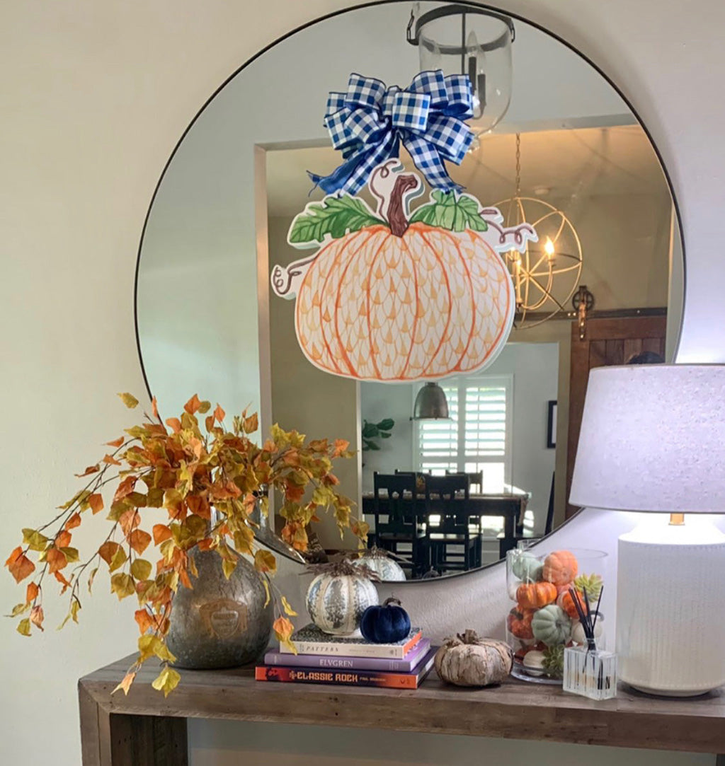 Autumn is calling! The perfect grandmillenial Fall front door décor. The Sandra Jean is a Herend inspired pumpkin that is approximately 23" x 18".