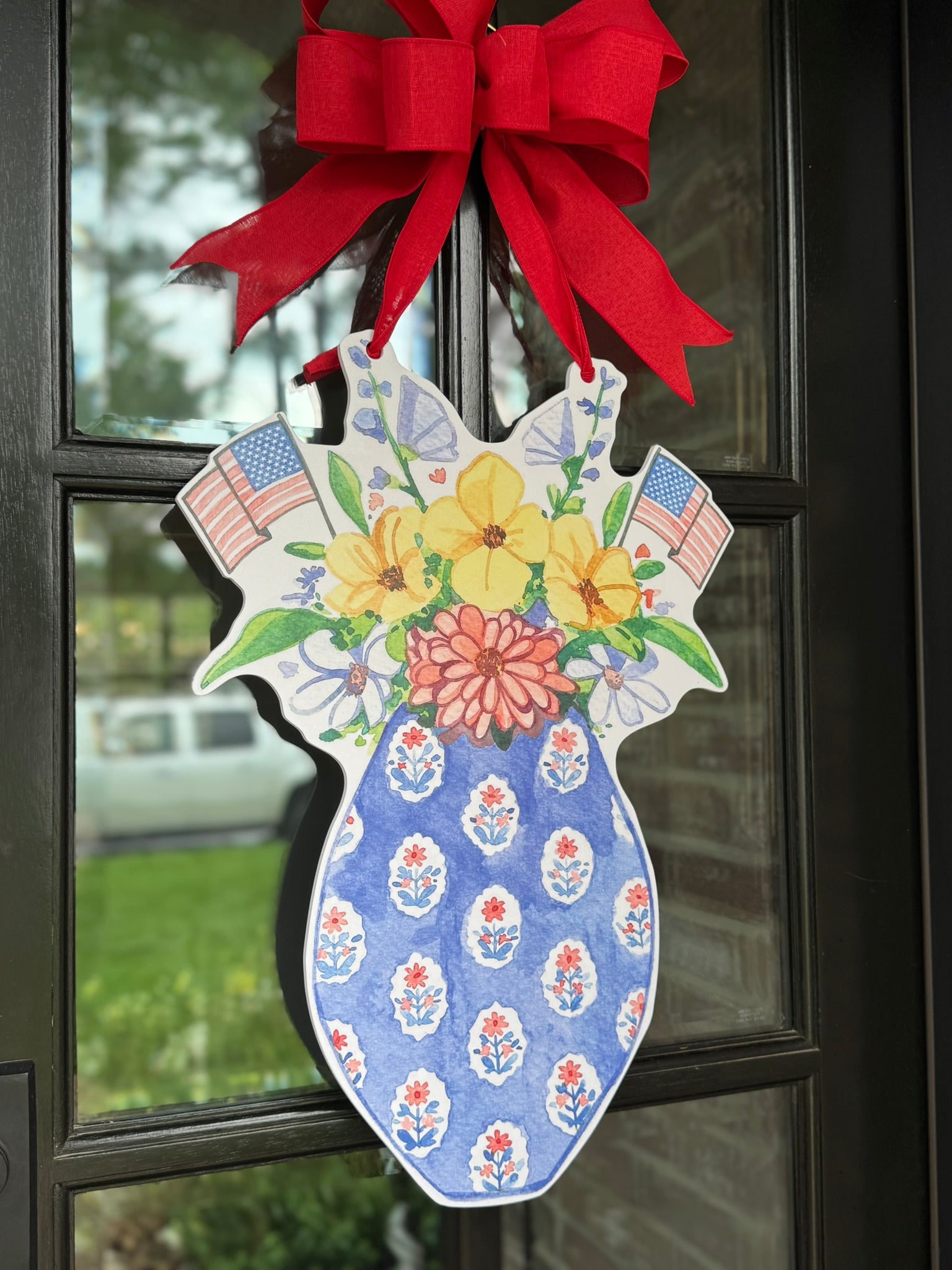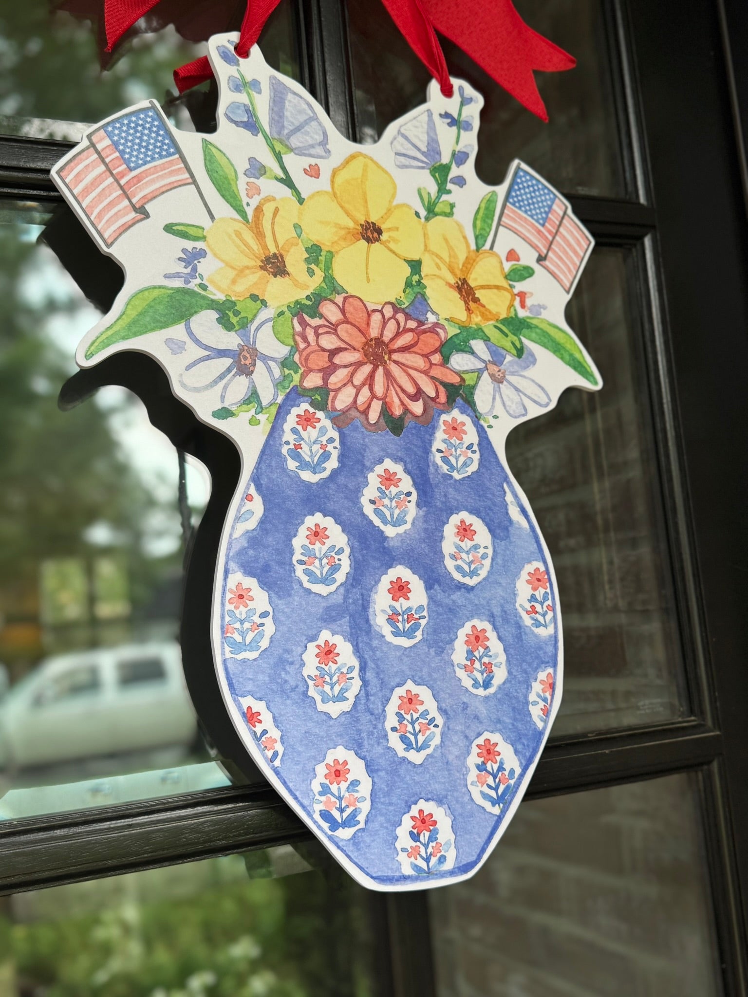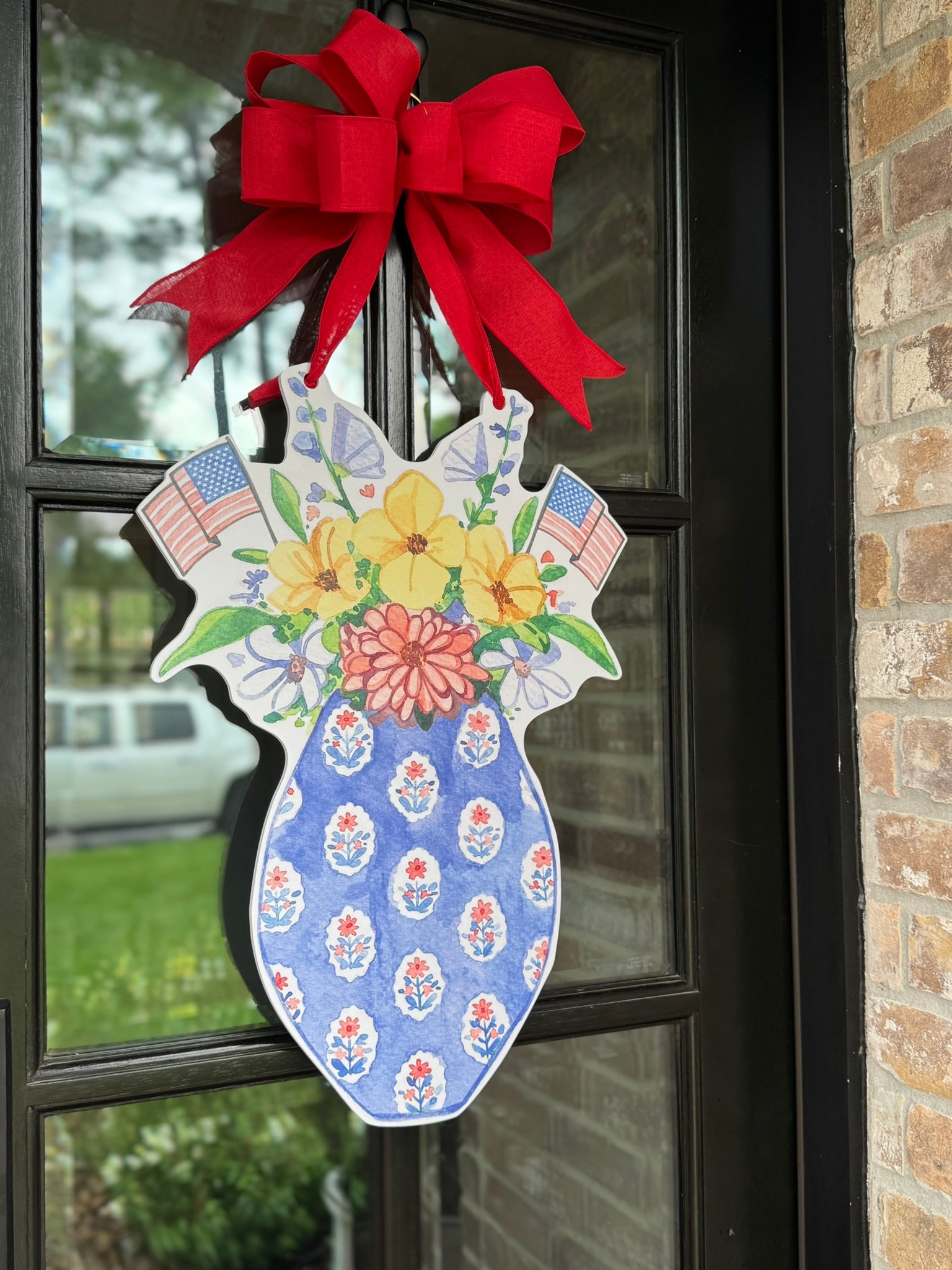 Glory Blue Block Print Patriotic Vase Door Hanger
