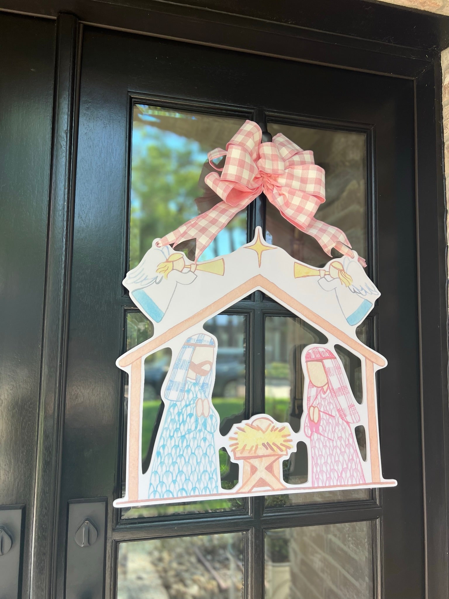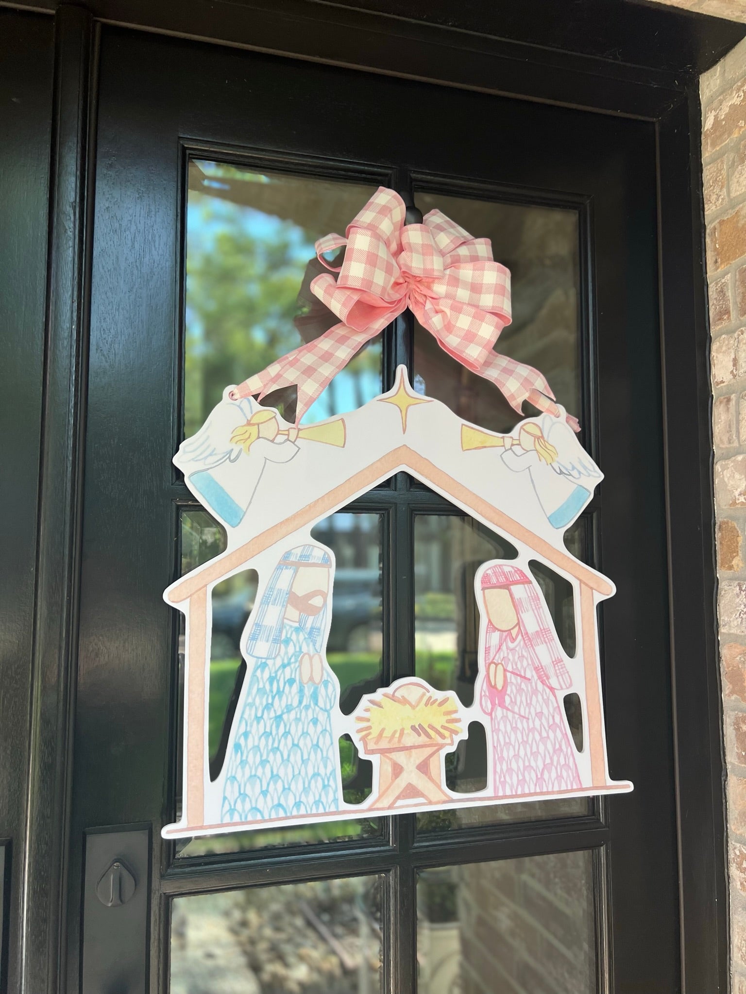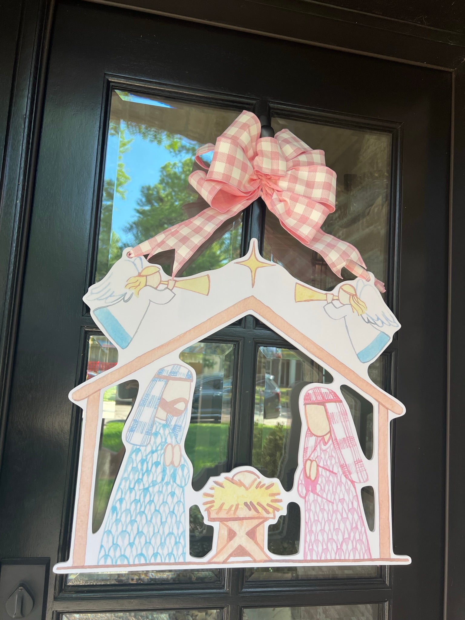 This door hanger is approximately 23" x 21" with two 1/2" holes