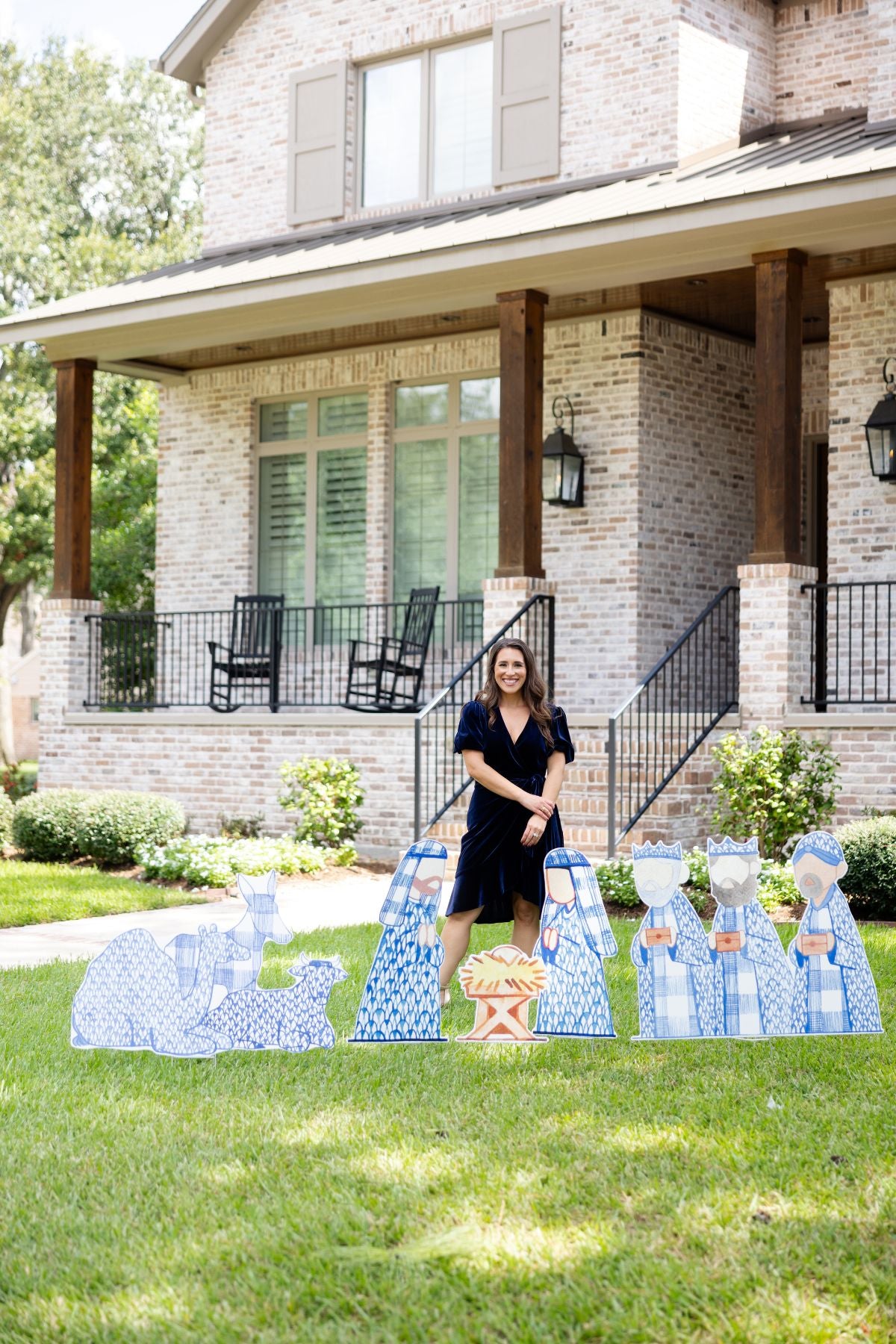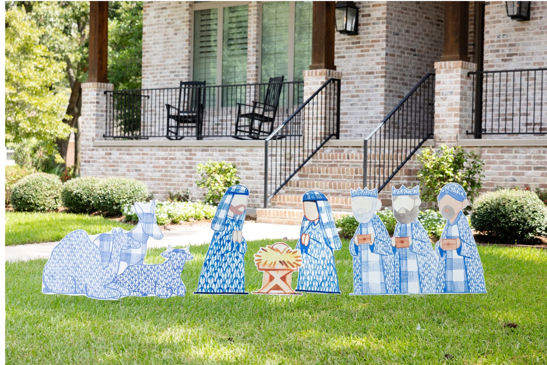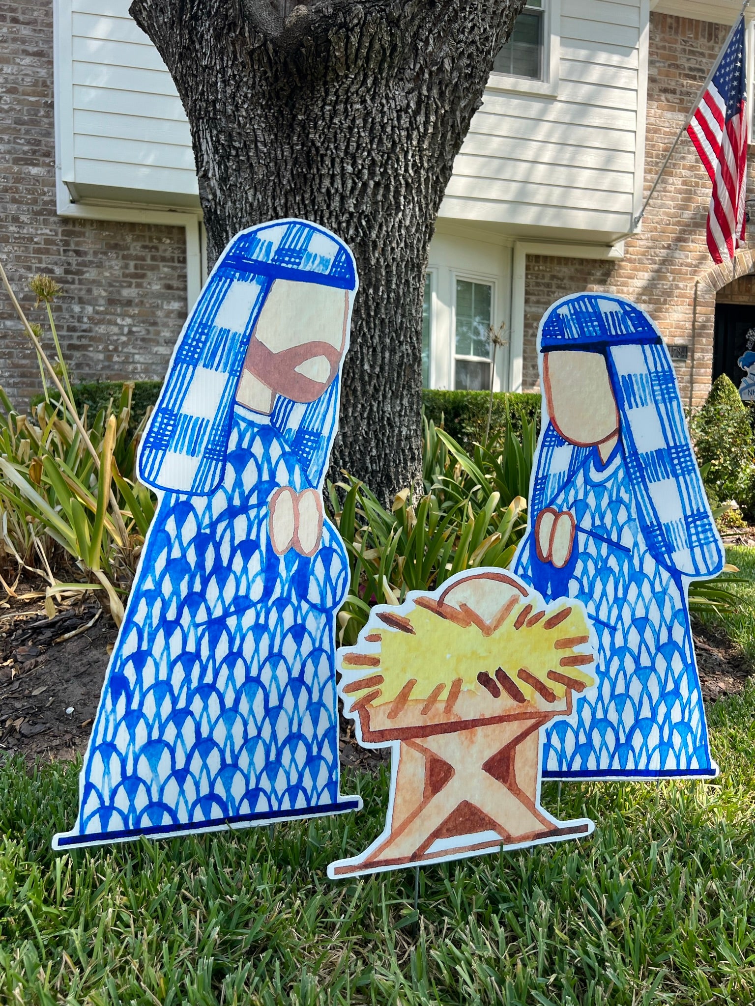 O, Come let us adore Him Blue Nativity Yard Stake Set