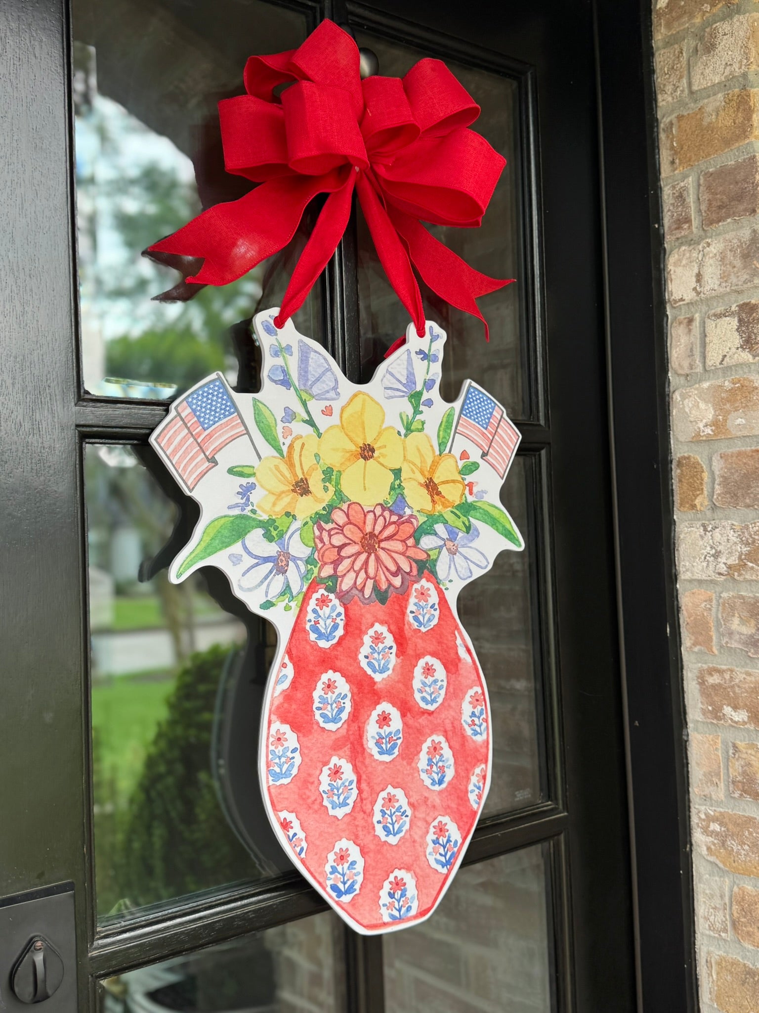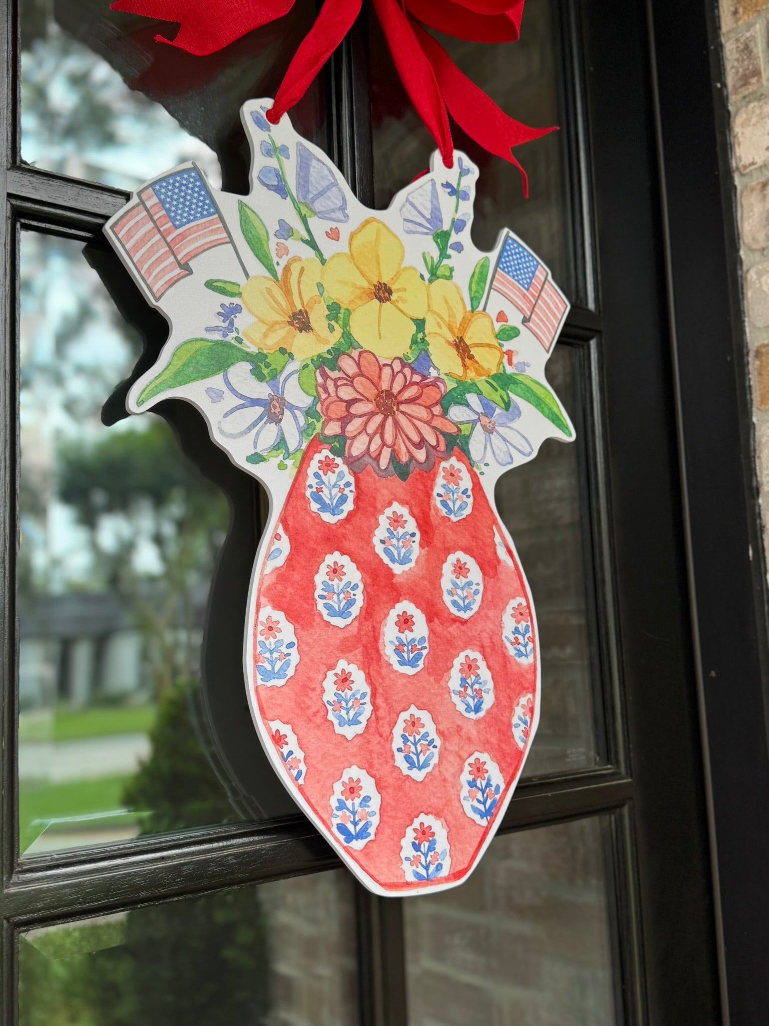 Liberty Red Block Print Patriotic Vase Door Hanger