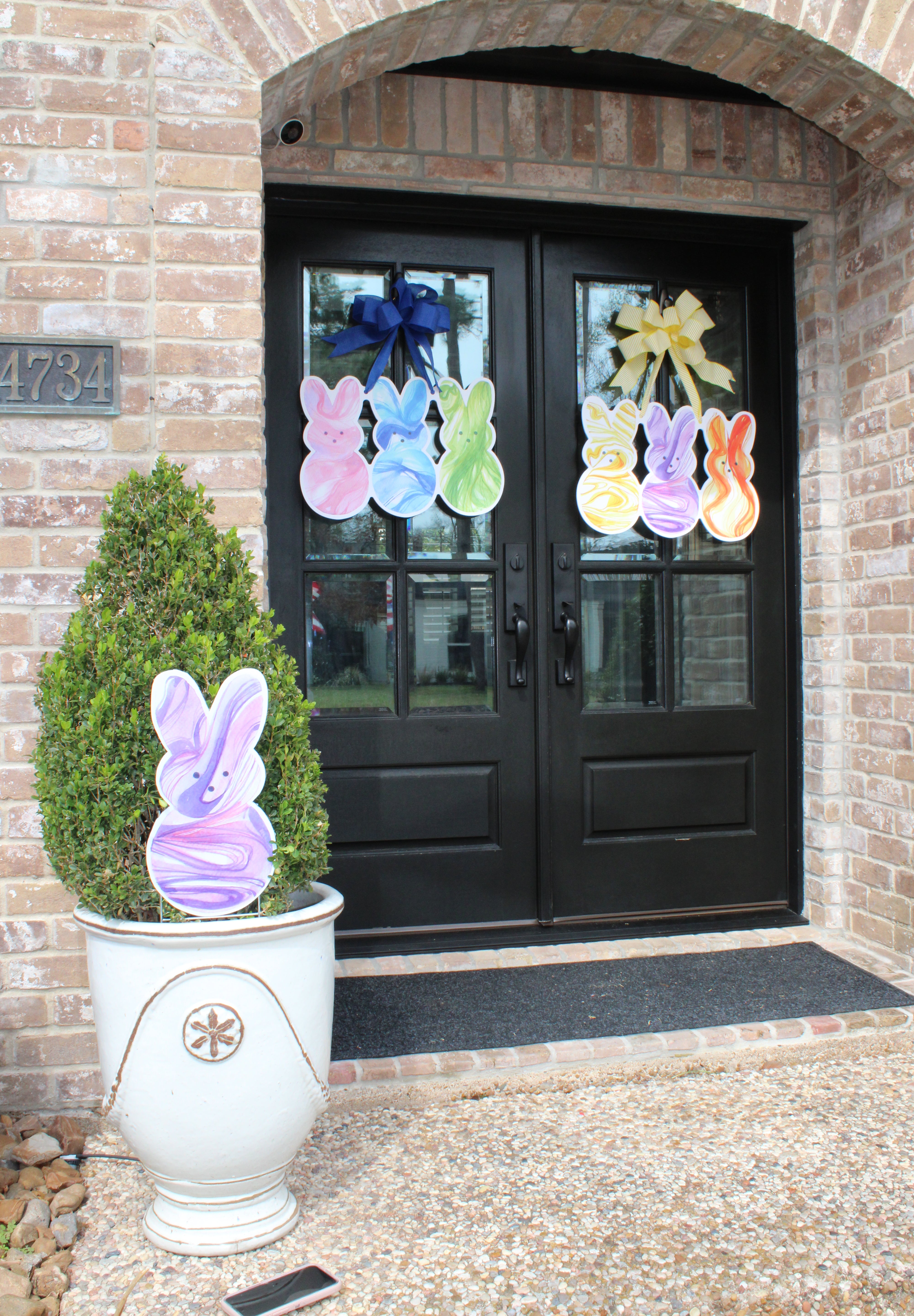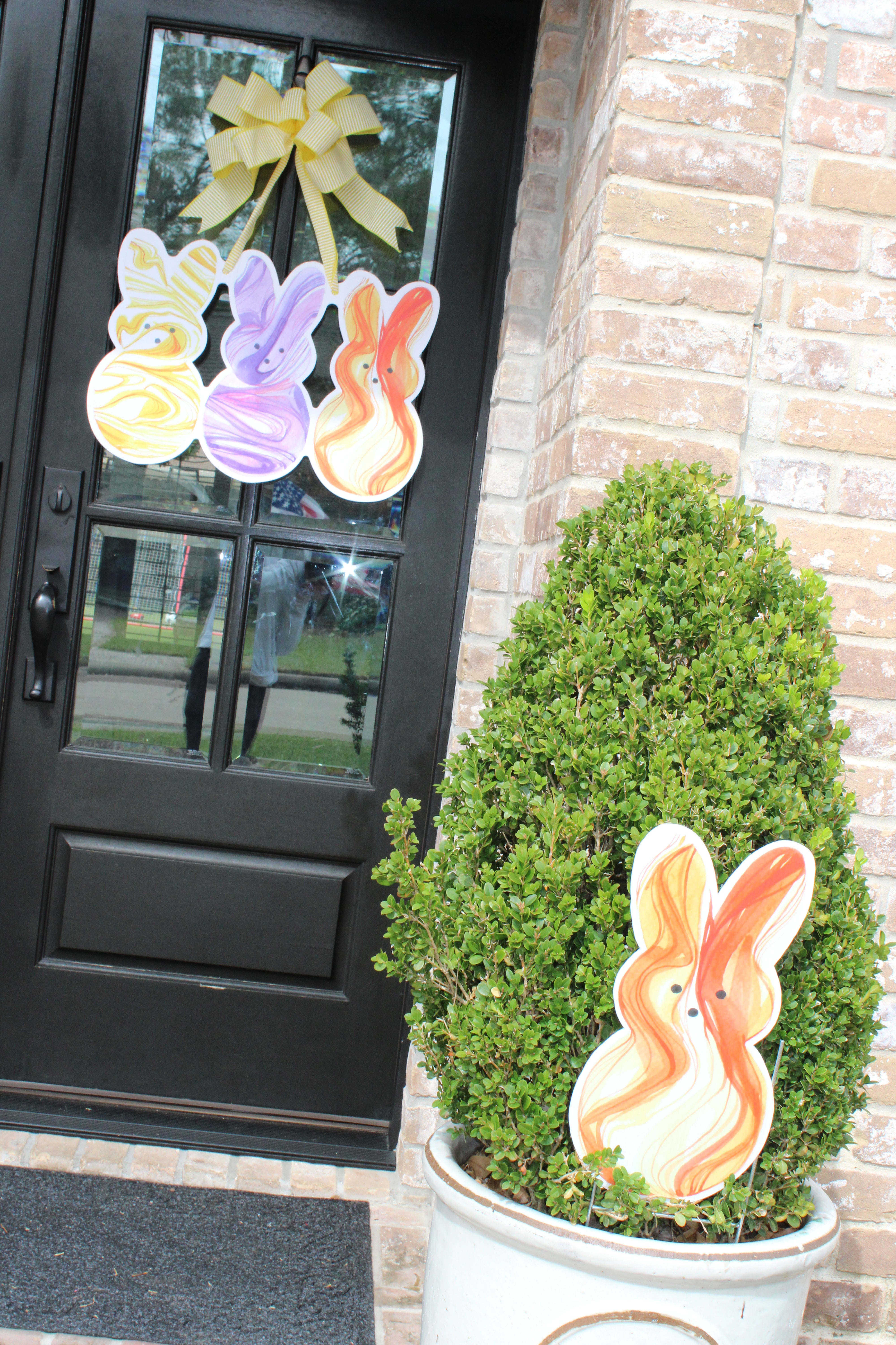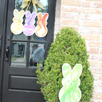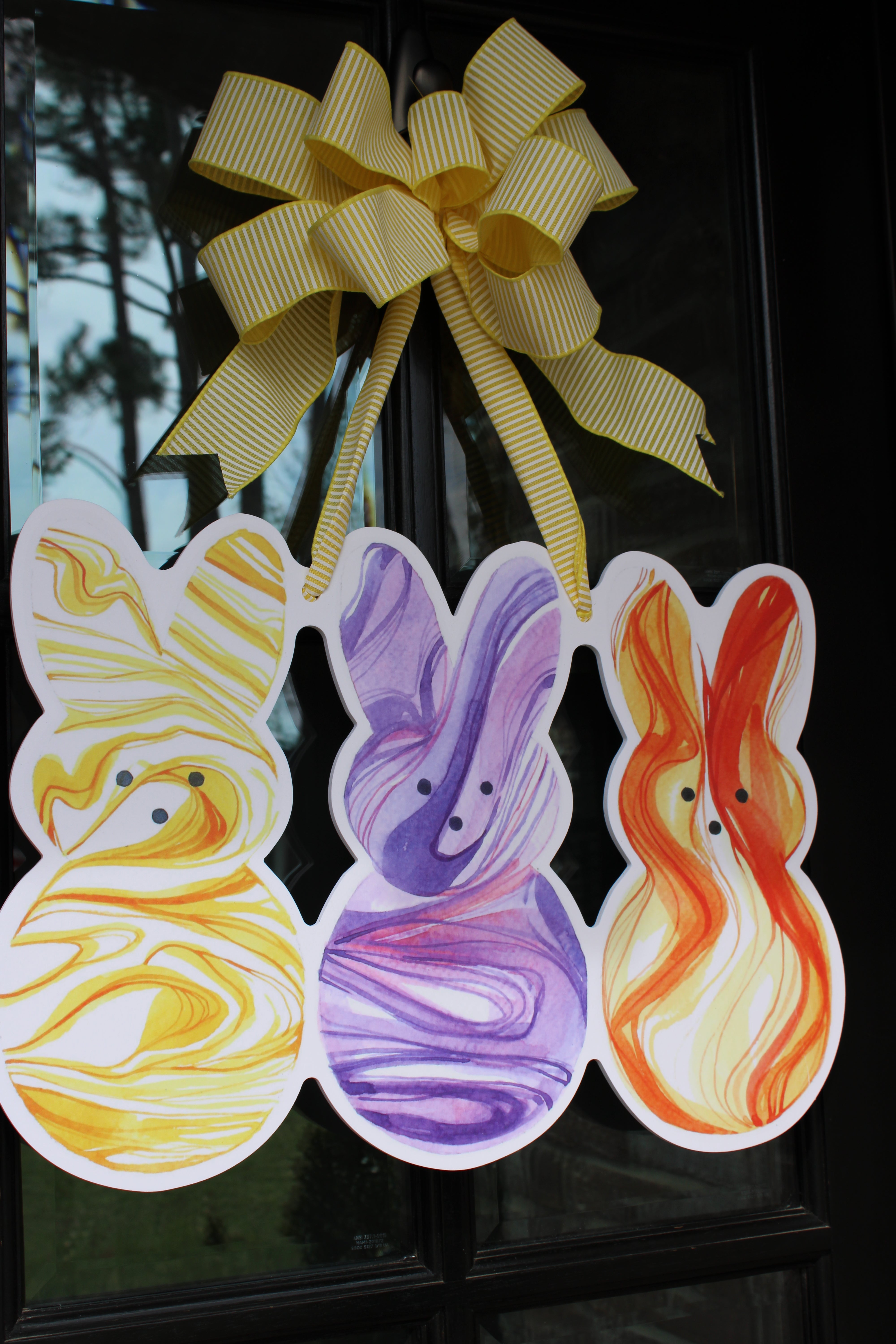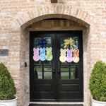 Featuring three oversized bunny silhouettes in rich, marbled swirls of sunshine yellow, vibrant violet, and fiery orange, this trio brings serious color and personality to your front door. The hand-painted watercolor movement gives each bunny depth and energy, creating a piece that feels both playful and elevated.