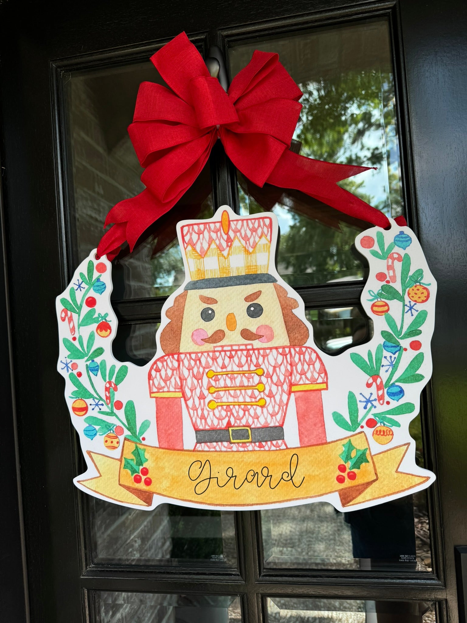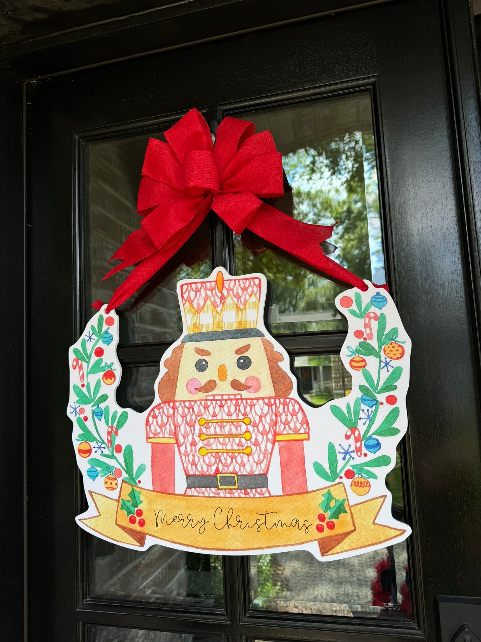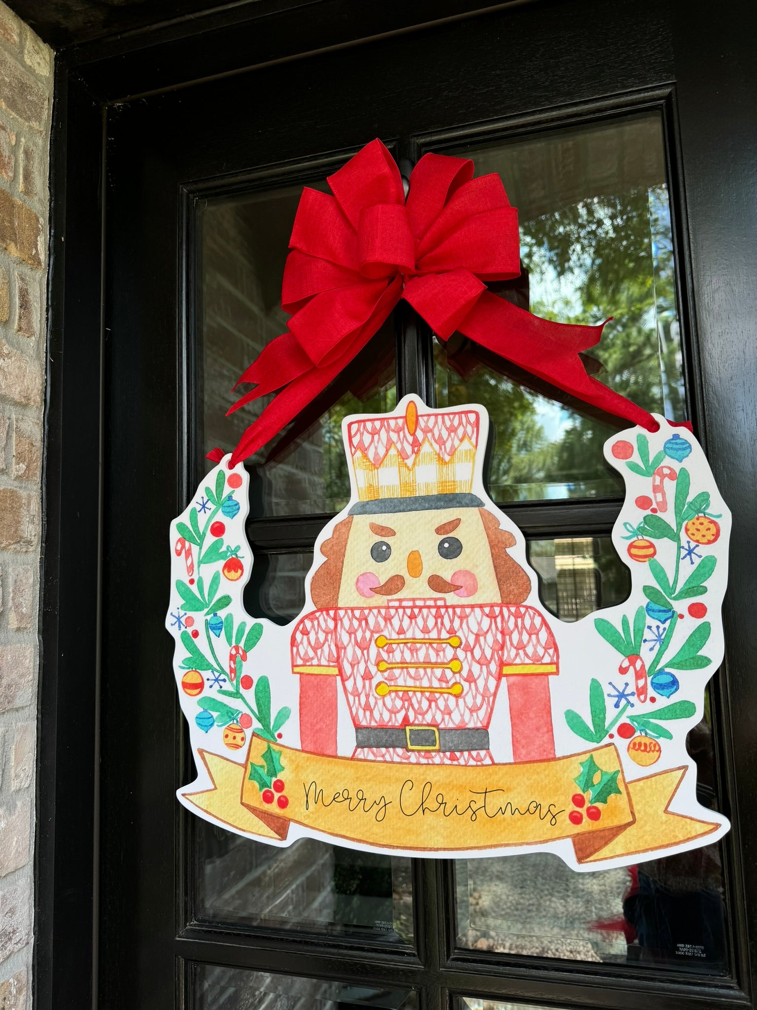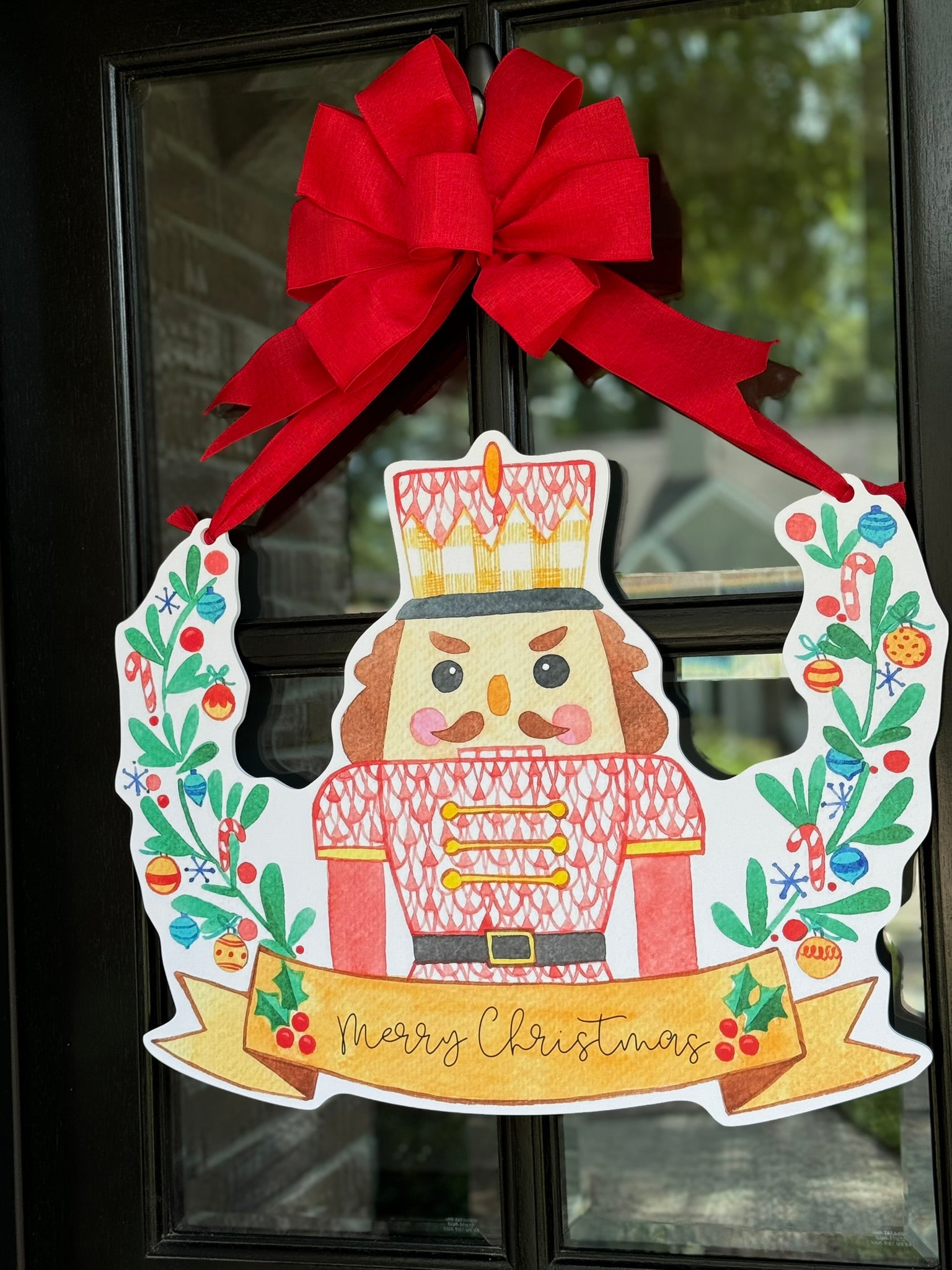 Double-sided door hangers and custom banner options only offered with the preorder. All orders after November 1st, will include "Merry Christmas" on Nutcracker Banner.