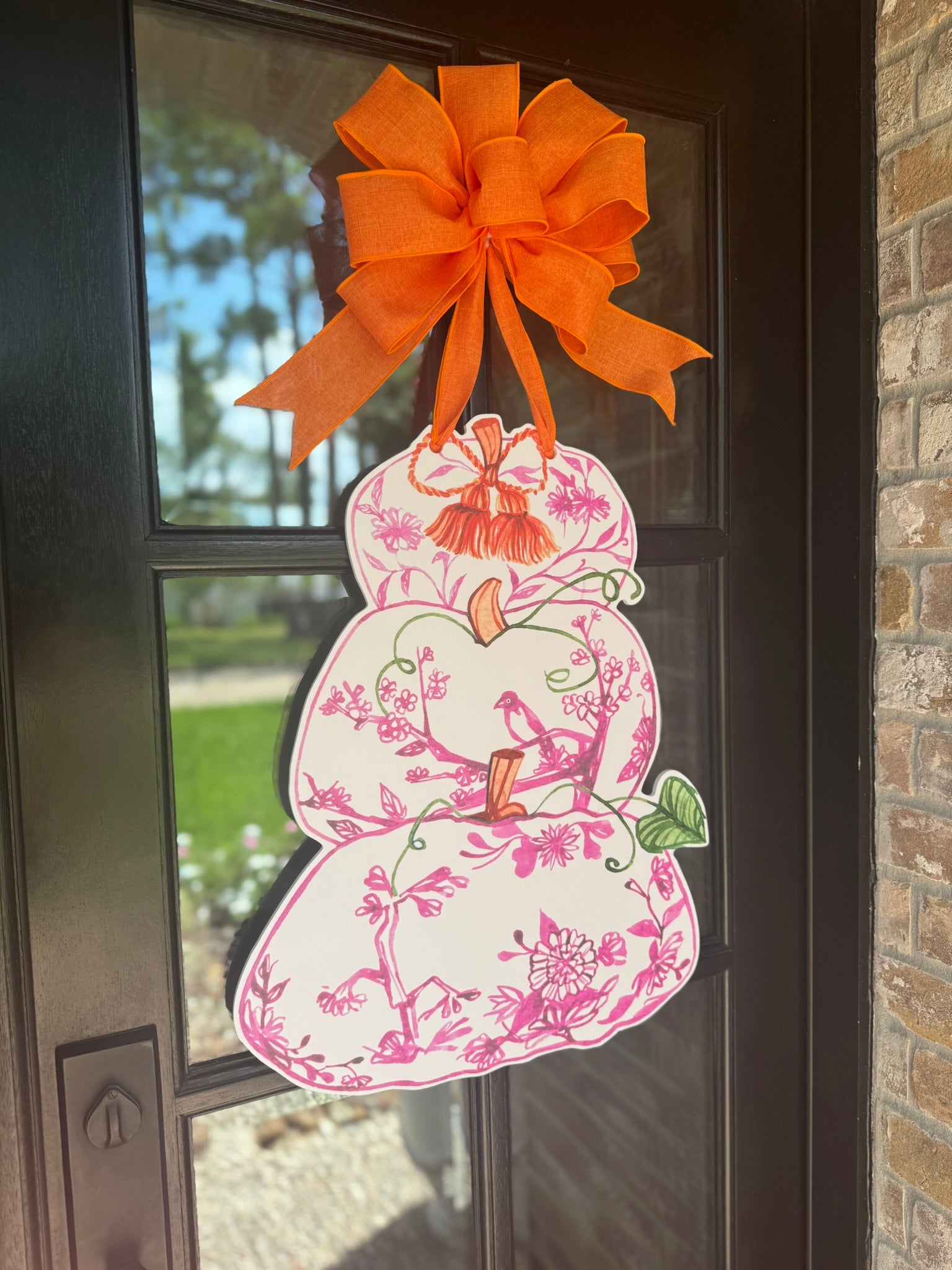 Pink Chinoiserie Pumpkin Tower Door Hanger