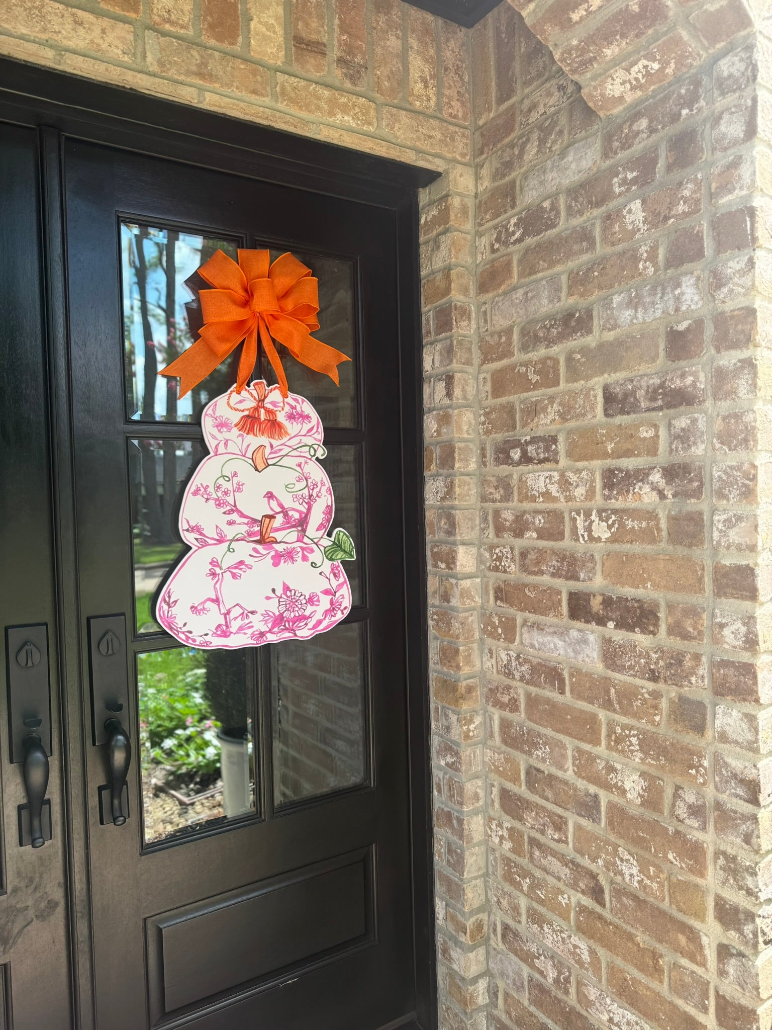 The perfect grandmillenial Fall front door décor. This door hanger measures approximately 18" x 23".