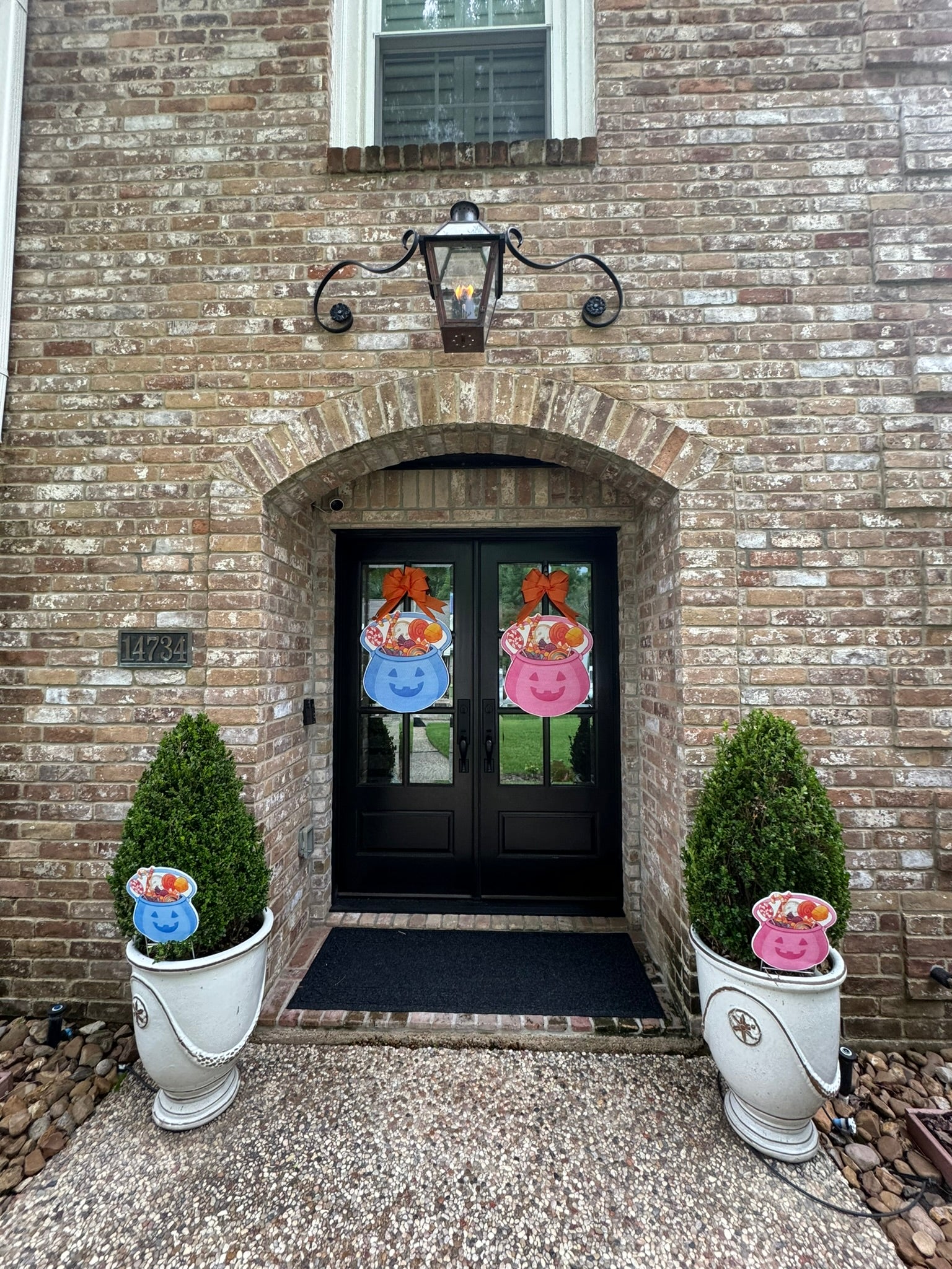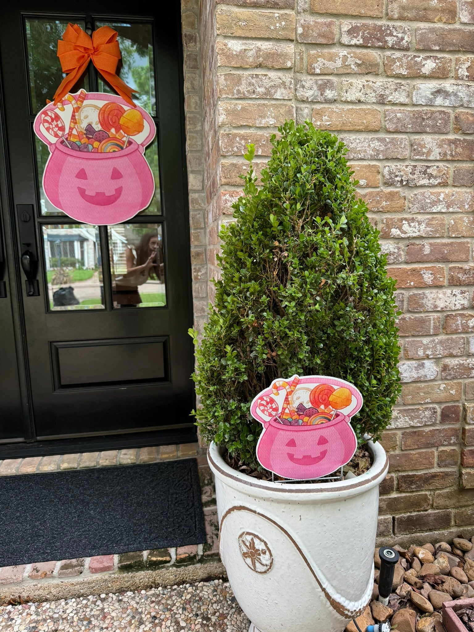 The perfect grandmillenial Fall front door décor. This pot stake measures approximately 9" x 10".