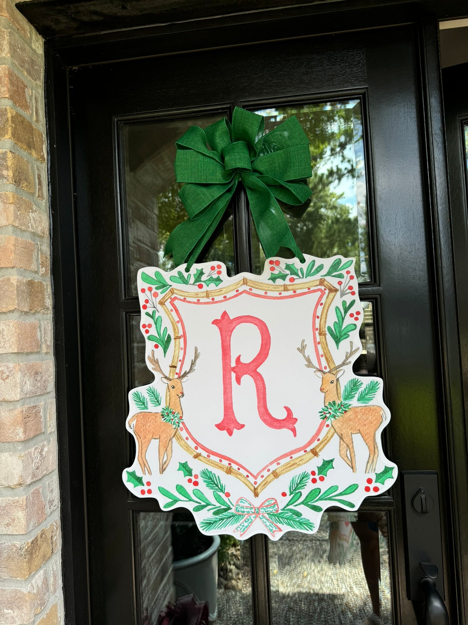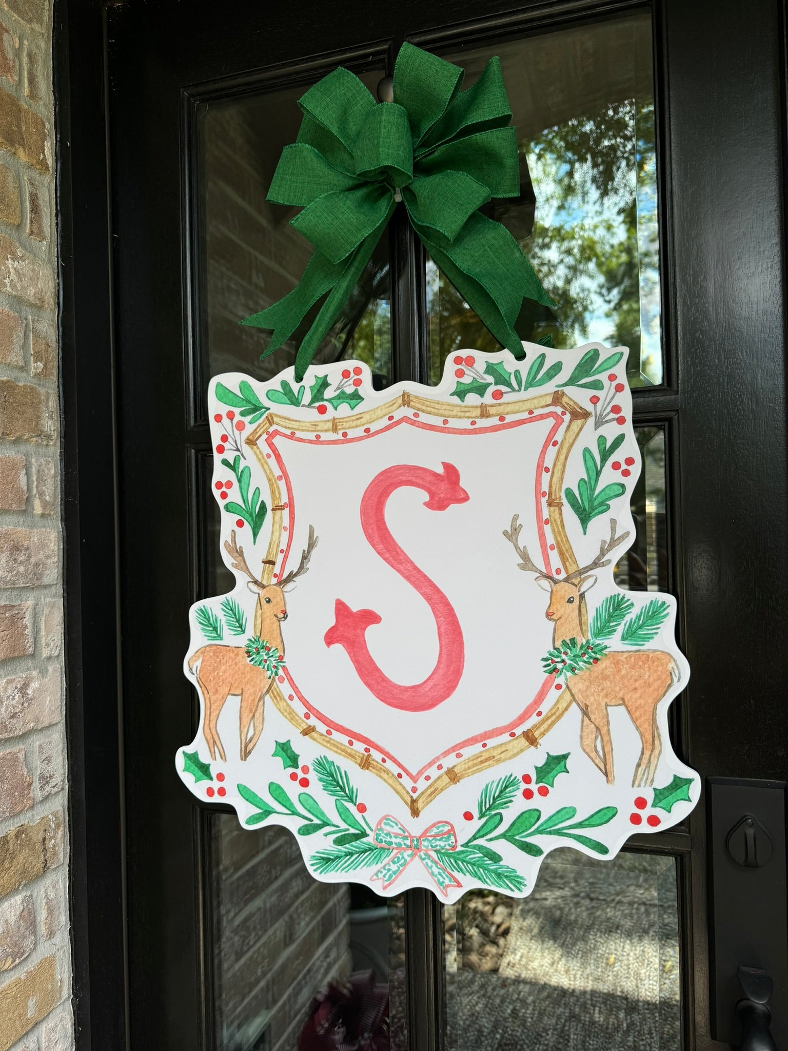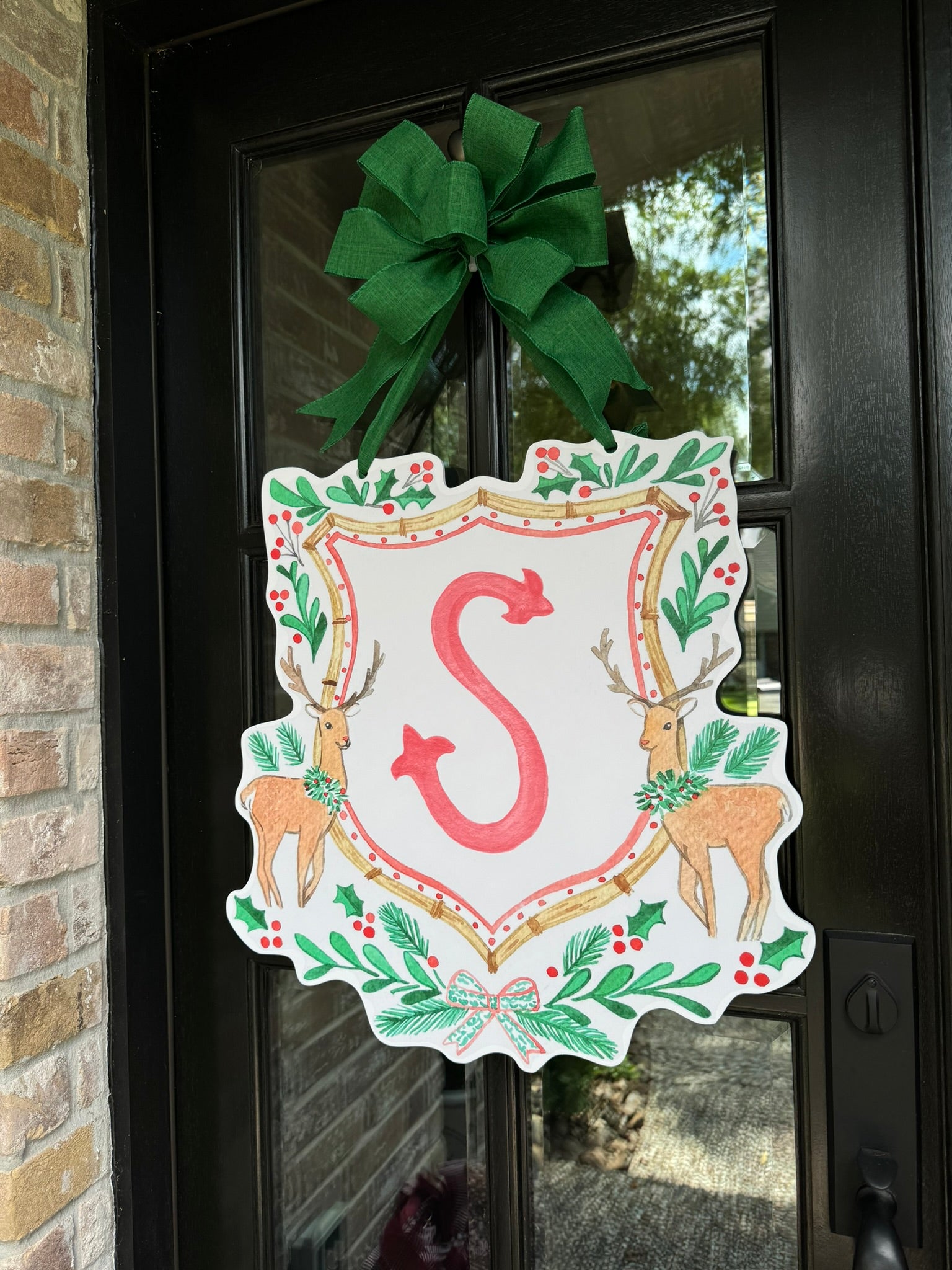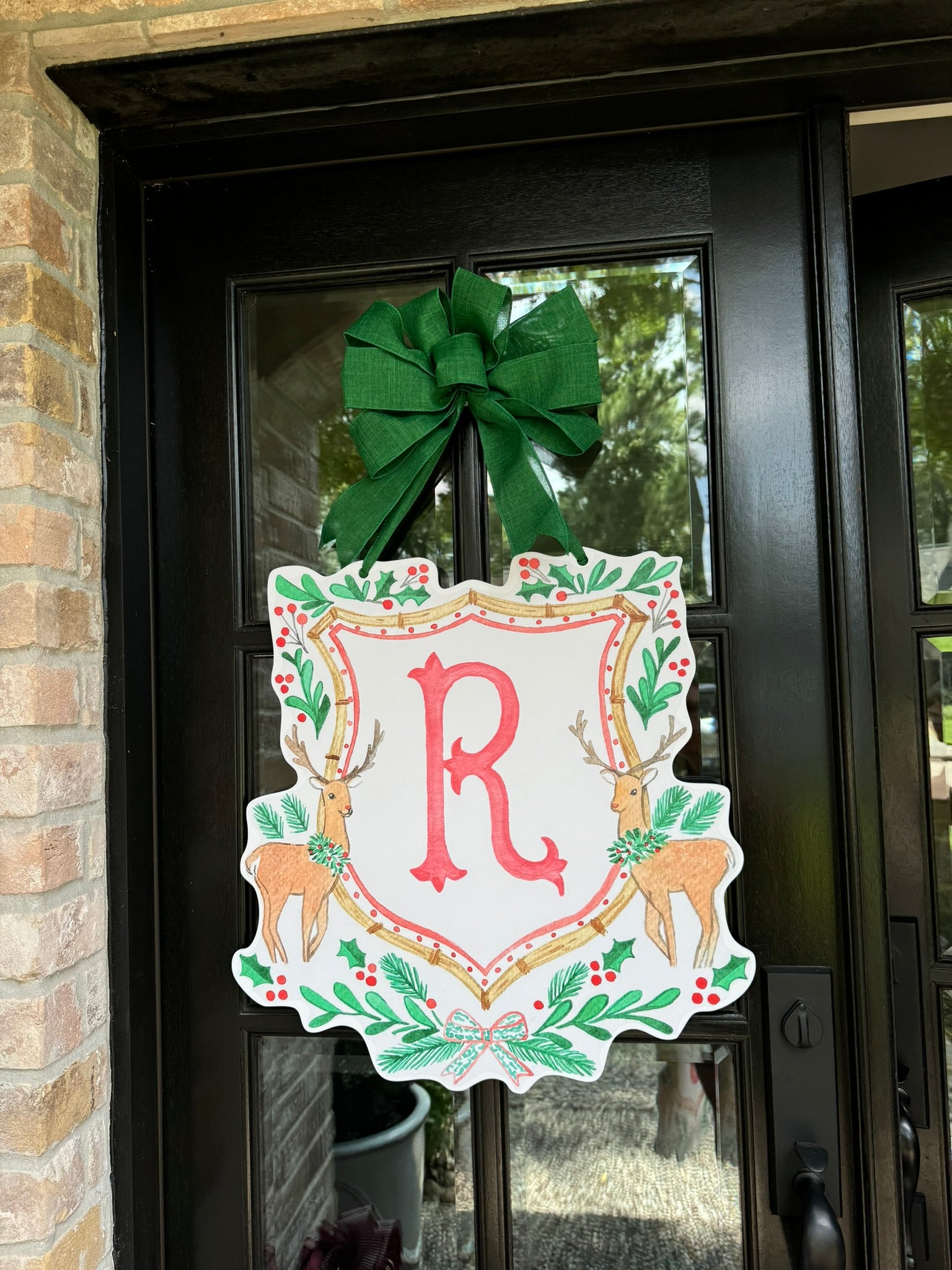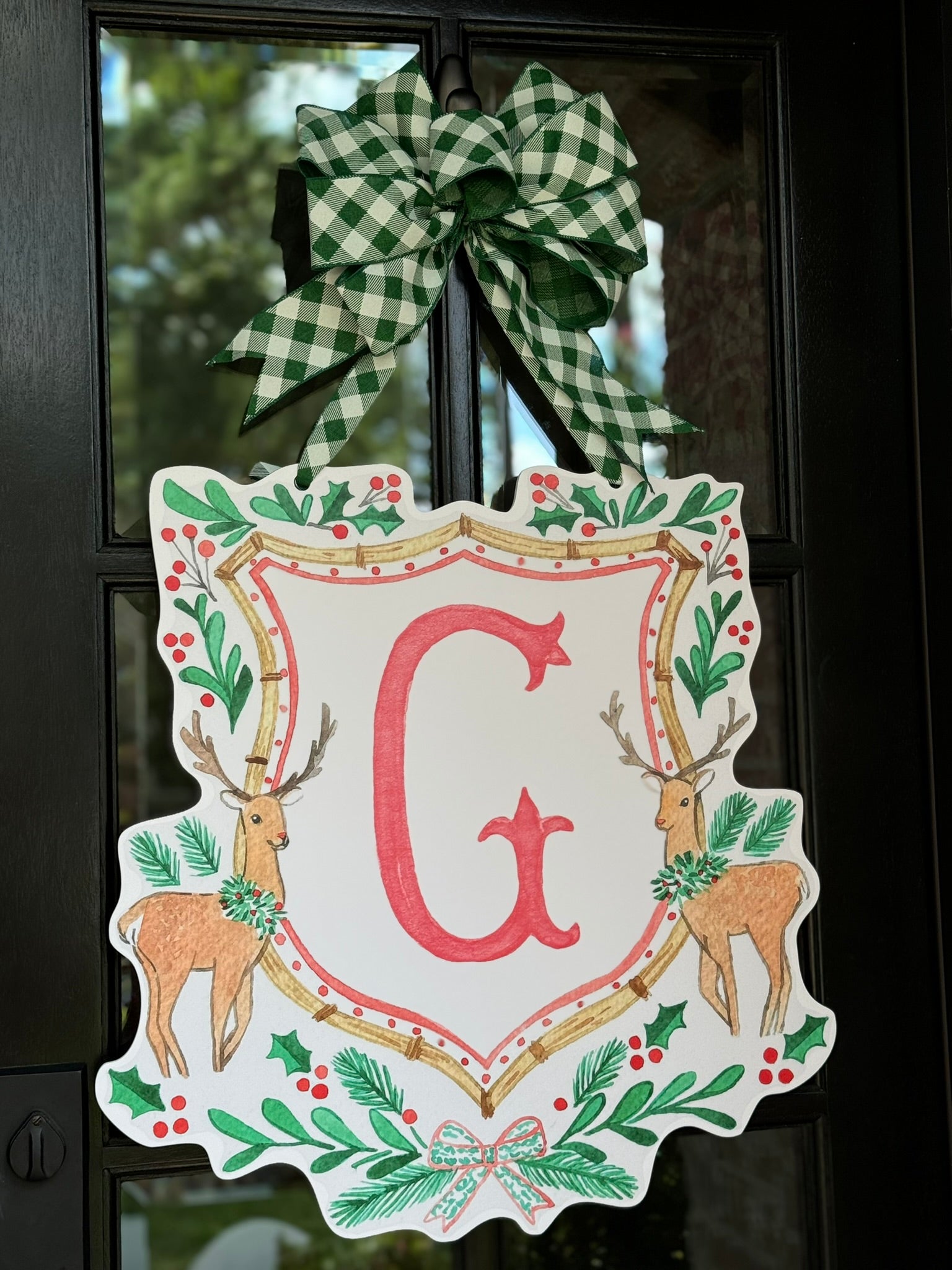 Double-sided door hangers and custom letter options only offered with the preorder. All orders after November 1st, will include "Merry Christmas" on the Reindeer Crest.