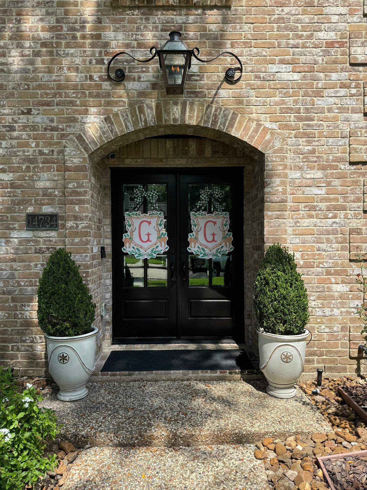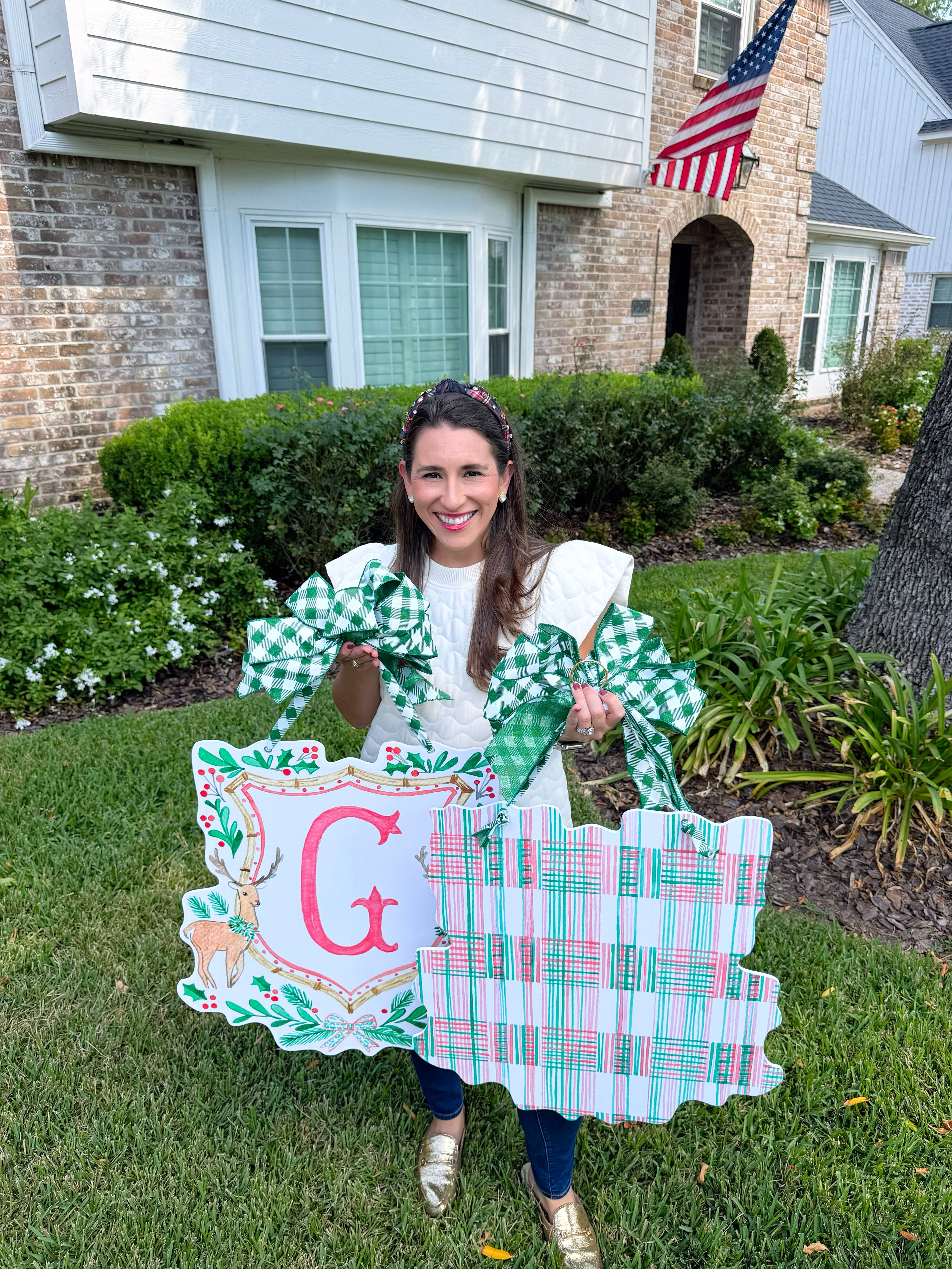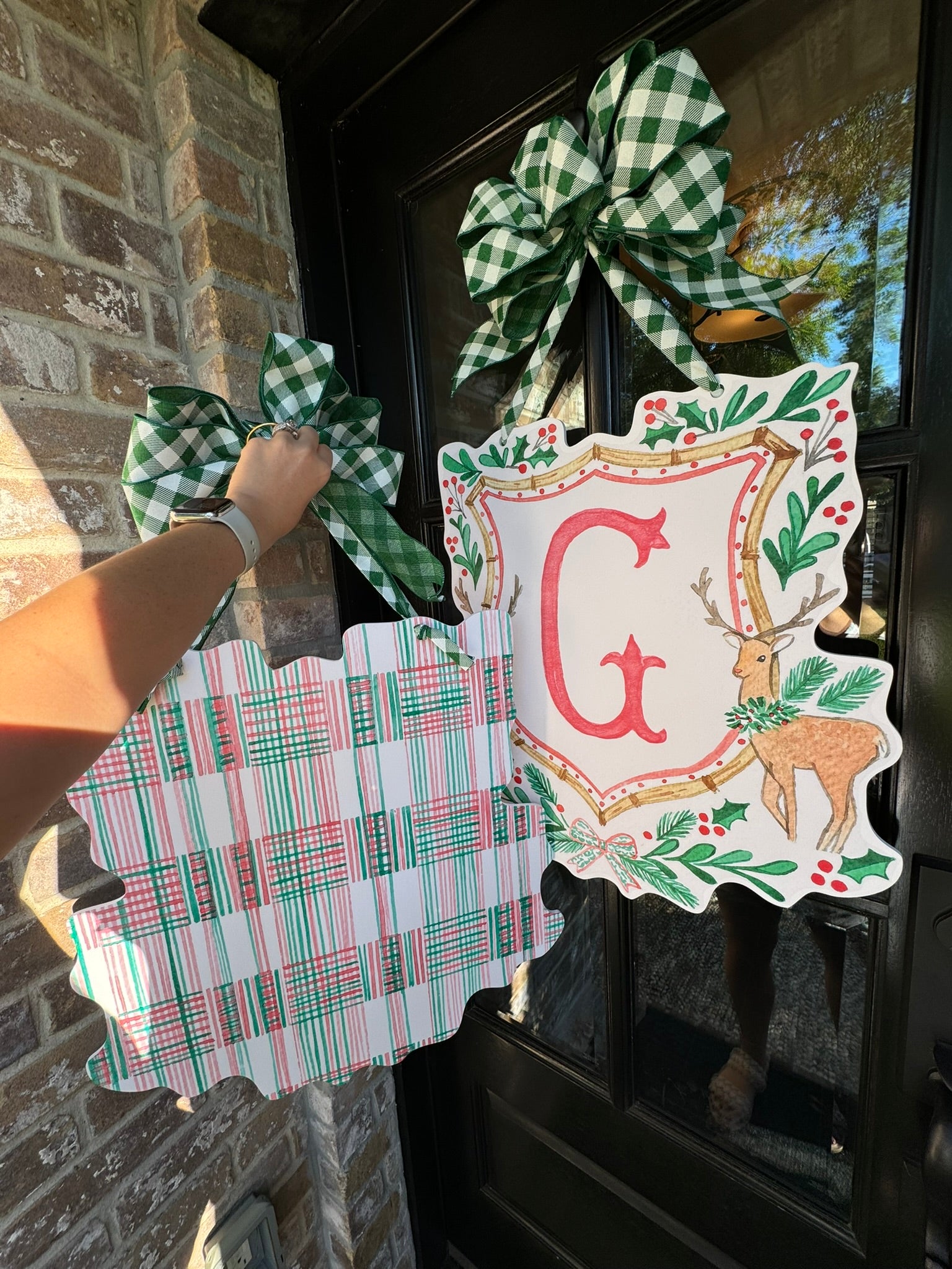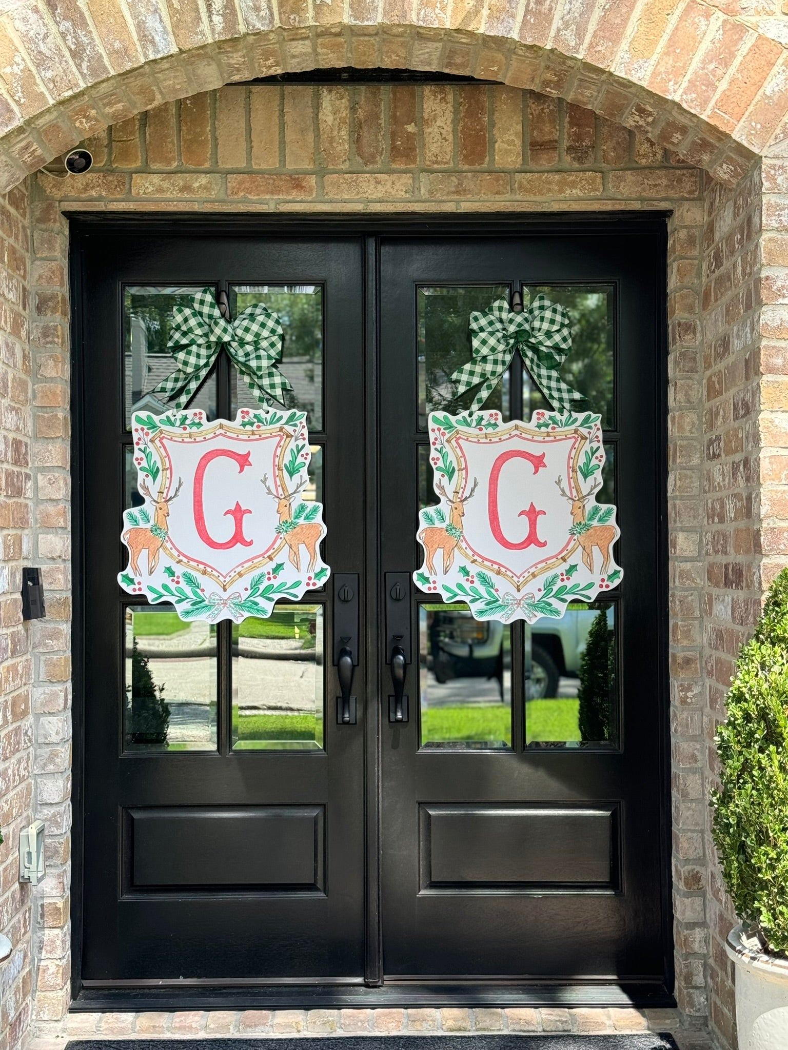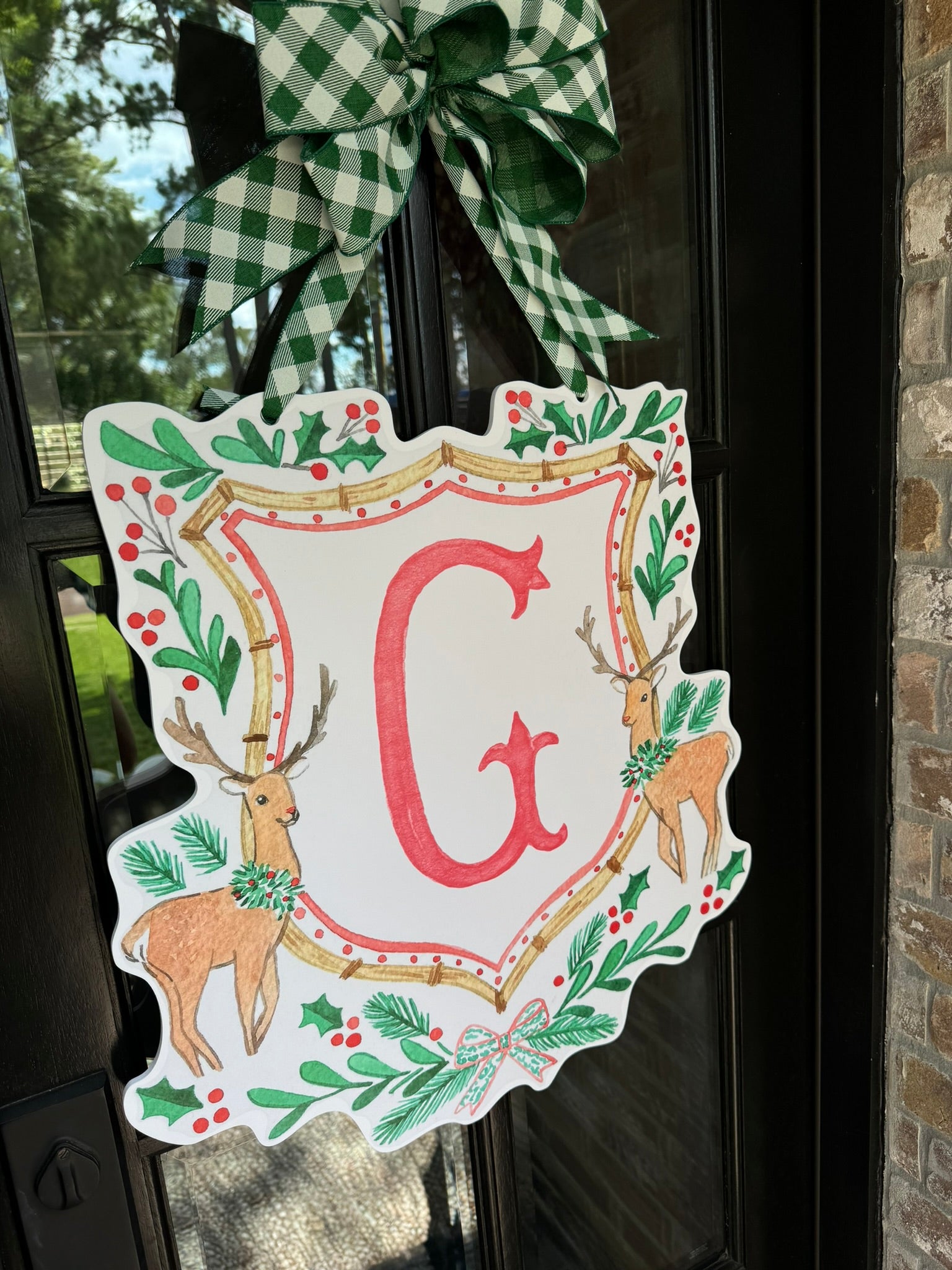 Double-sided door hangers and custom letter options only offered with the preorder. All orders after November 1st, will include "Merry Christmas" on the Reindeer Crest.