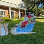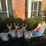 Santa Chinoiserie Sleigh and Reindeer Yard Stake Set