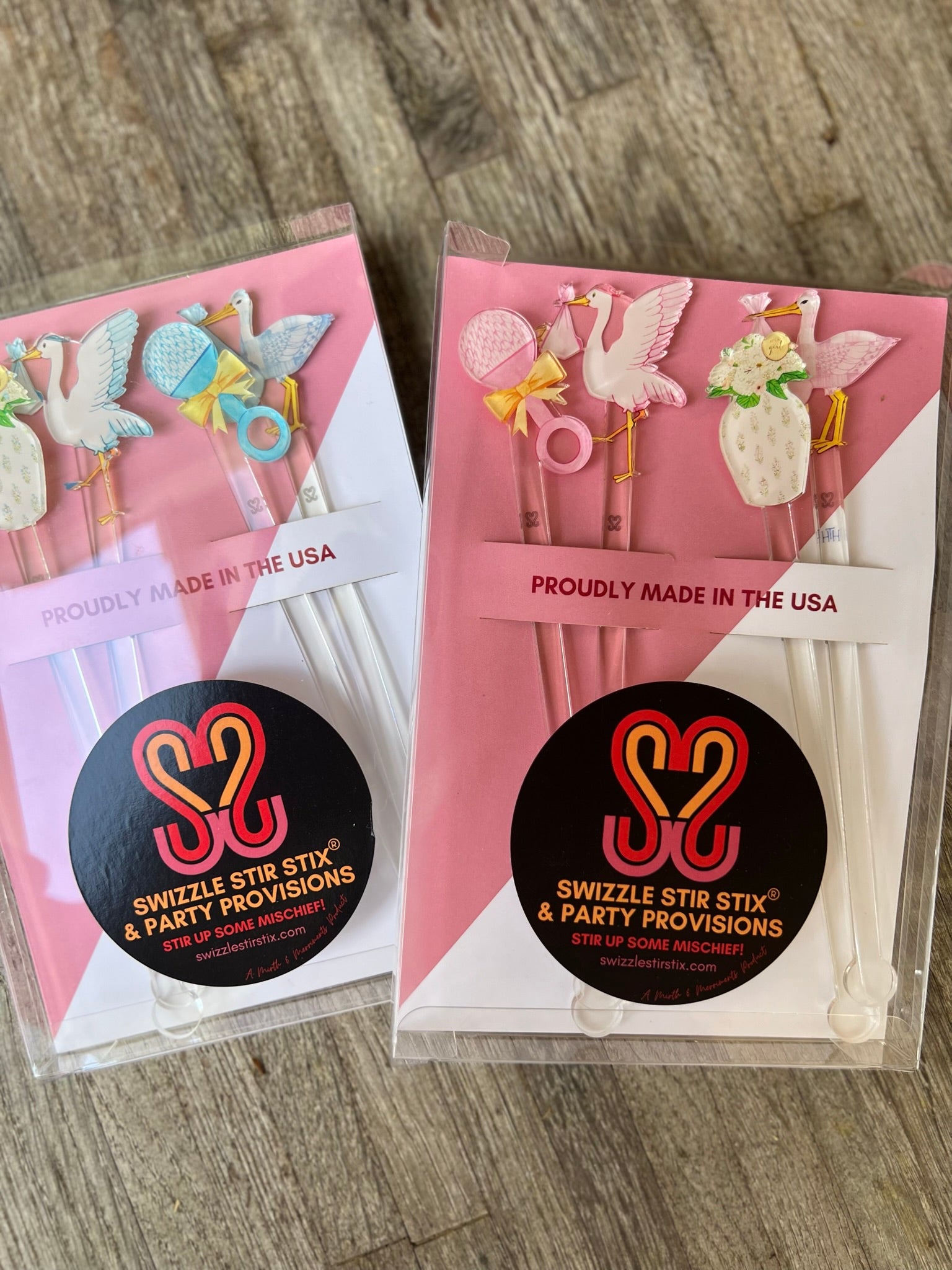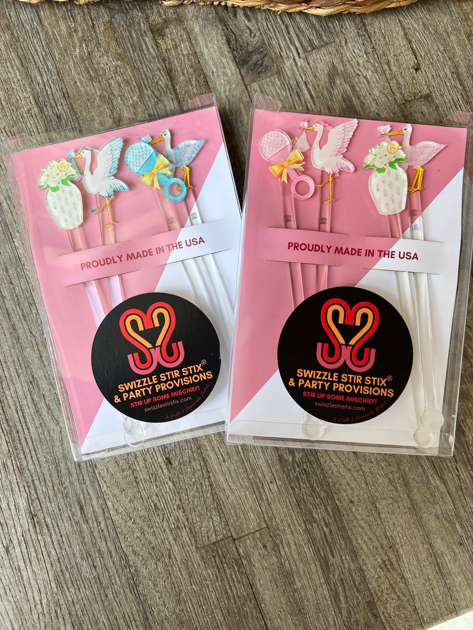 Baby Boy Swizzle Stir Stick Set Set includes four swizzle stir sticks. Stirring up Mischief in partnership with Swizzle Stir Sticks! What is a swizzle stir stick? A tool used to mix beverages!